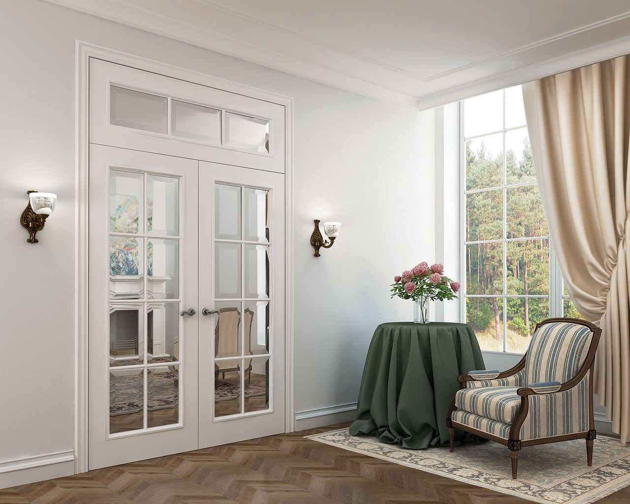 Стеновые и потолочные панели, плинтусы, фрамуги, порталы, накладки на входные двери. Эти детали делают обстановку гармоничной и целостной. Ведь красивые двери — только часть интерьера. Соберите свой комплект сразу при покупке дверей, чтобы не заботиться о разнице оттенков или фактуры.