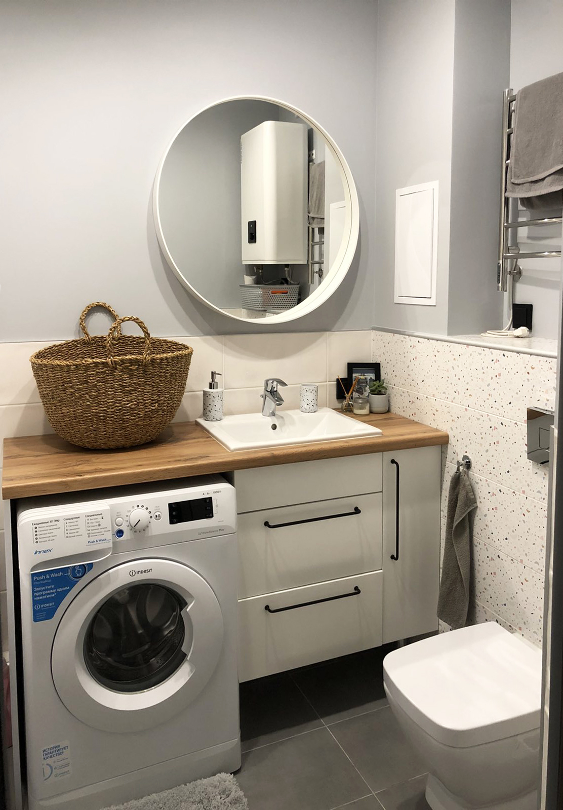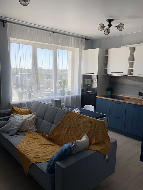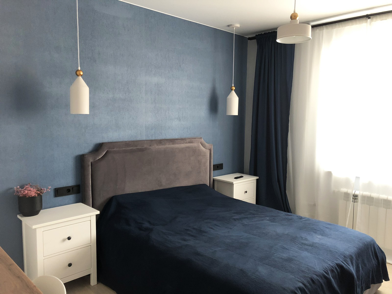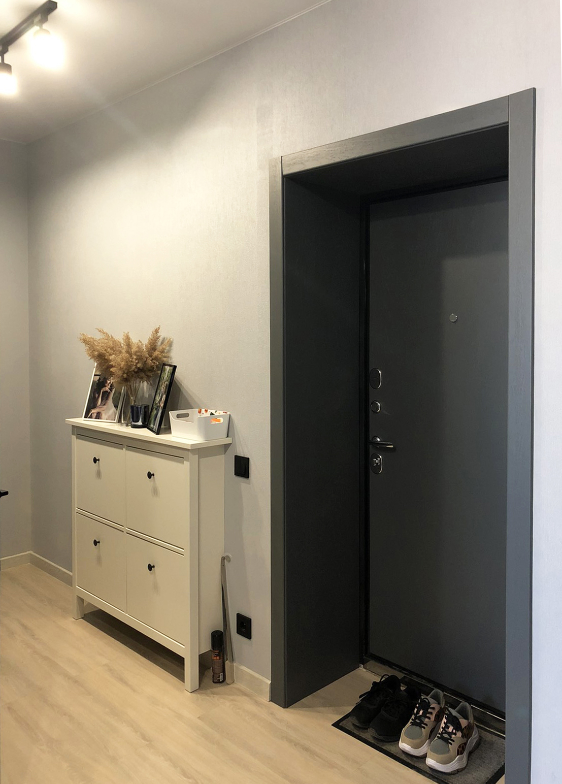 Дизайн-проект квартиры в ЖК "На Владимирской" был создан для молодой семьи. Бюджет был ограничен, но с помощью хозяйки квартиры, обладающей отличным вкусом, удалось получить хороший результат. Ее любимый цвет - синий - был использован в интерьере как акцент, к нему в пару отлично подошли серые двери фабрики Терем. Лаконичный дизайн всего интерьера продиктовал выбор соответствующей модели с гладким полотном, легкой текстурой дерева и черными ручками, поддерживающими люстры и выключатели.