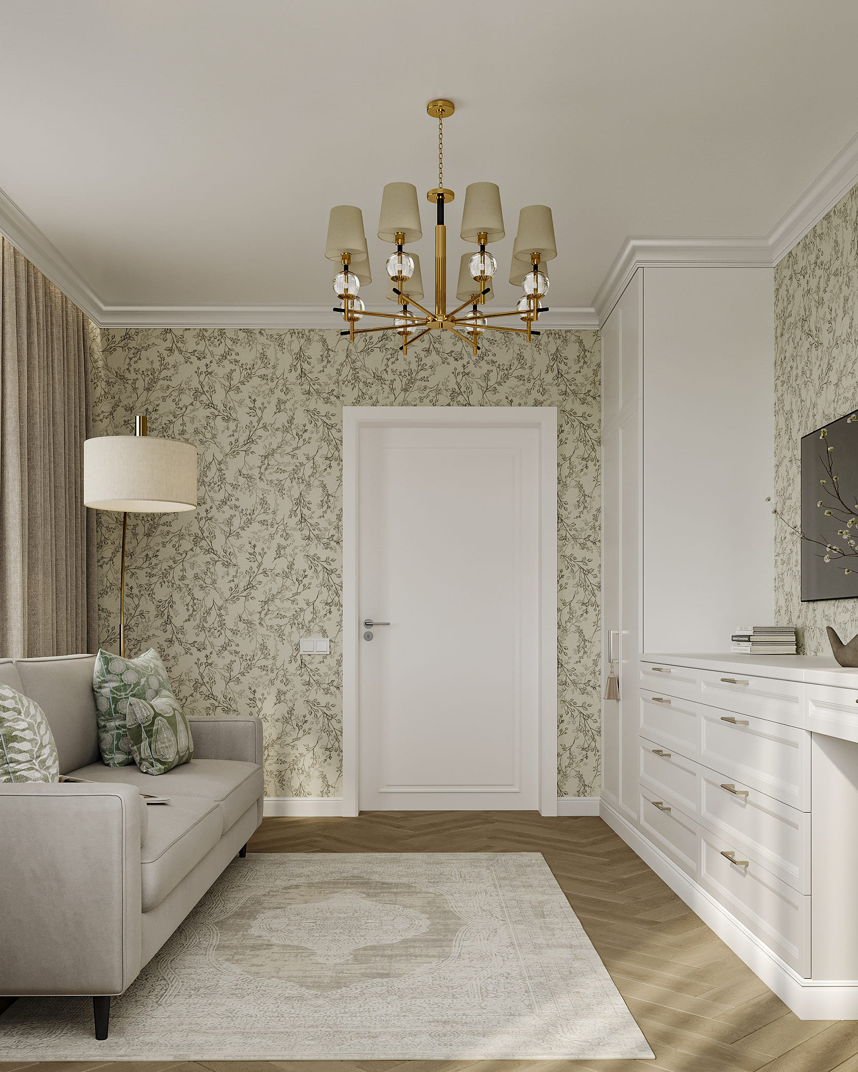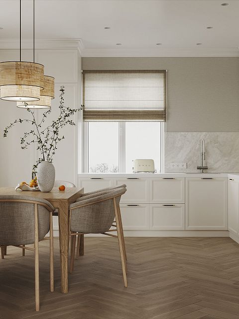 Цветовая палитра дарит пространству легкость и свежесть, а умело подобранные акценты в виде изящной мебели и элементов декора создают гармонию и элегантность. Мягкие текстуры и натуральные материалы дополняют общий стиль, превращая дом в истинное убежище для отдыха и спокойствия.