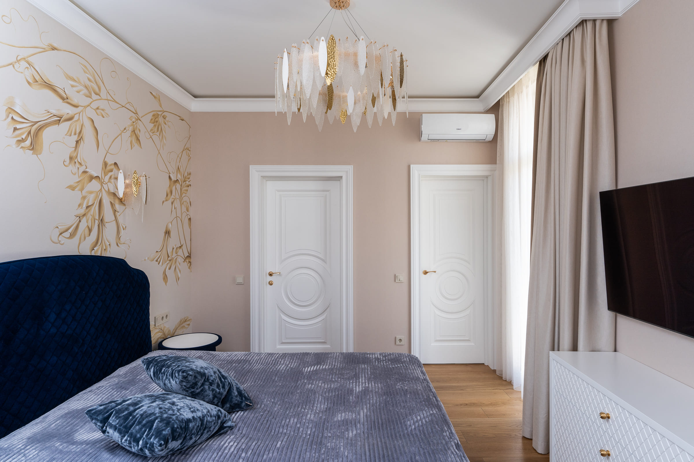 Утонченный и нежный дизайн-проект был создан для пары, которая часто наведывается в Геленджик для отдыха. У хозяев уже взрослые дети, которые живут отдельно, поэтому они могли позволить себе полностью отдаться эстетике и красоте.
