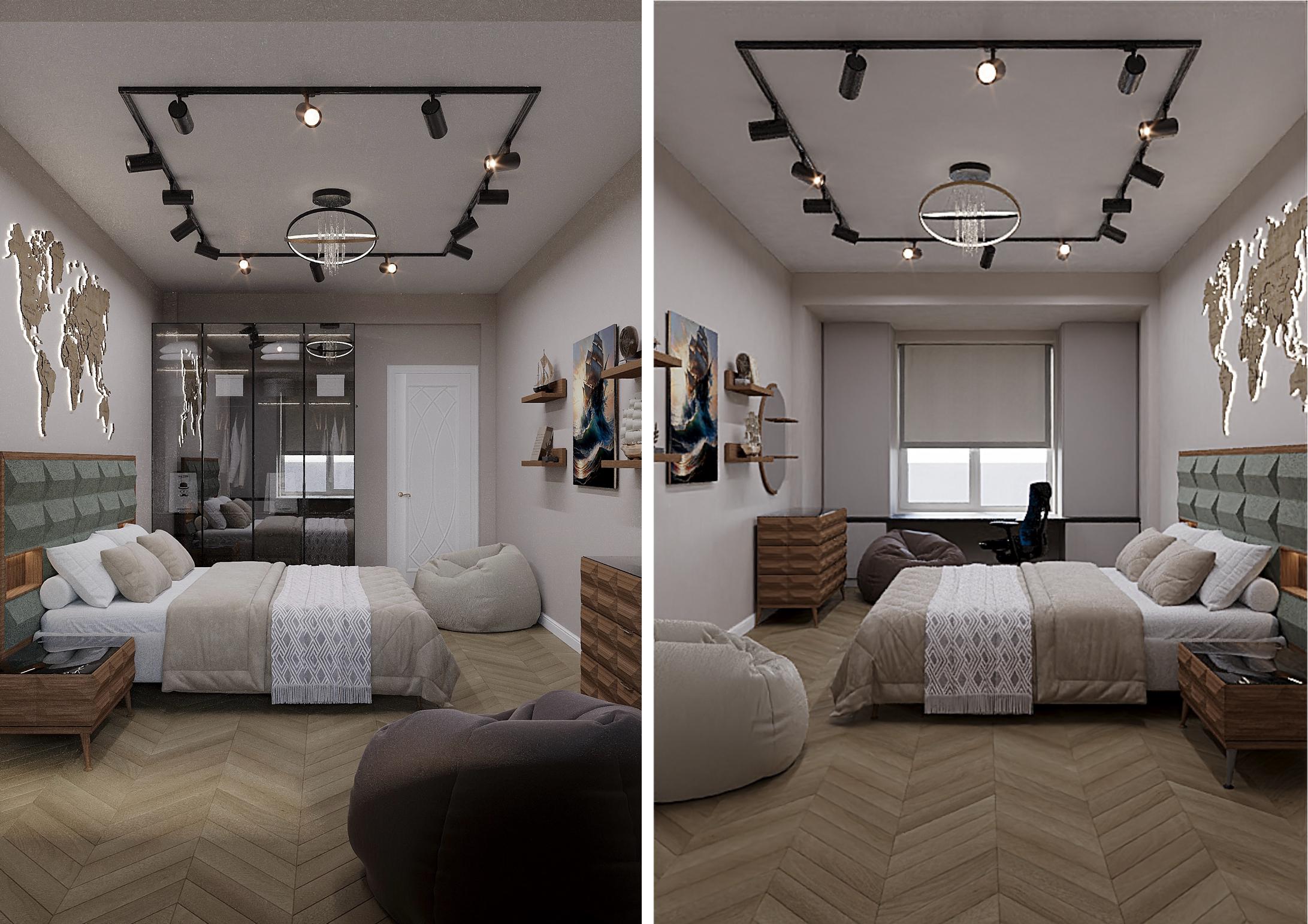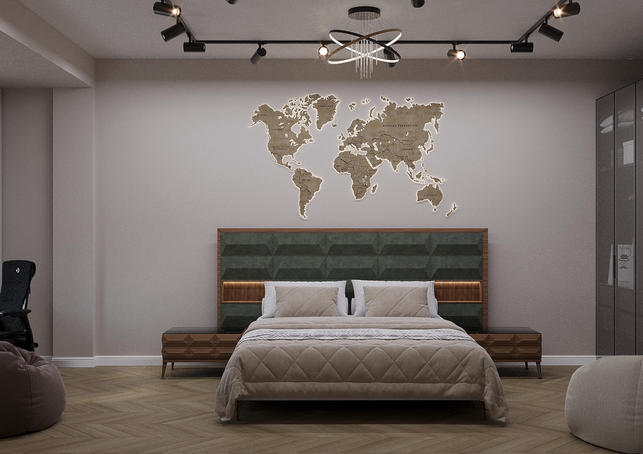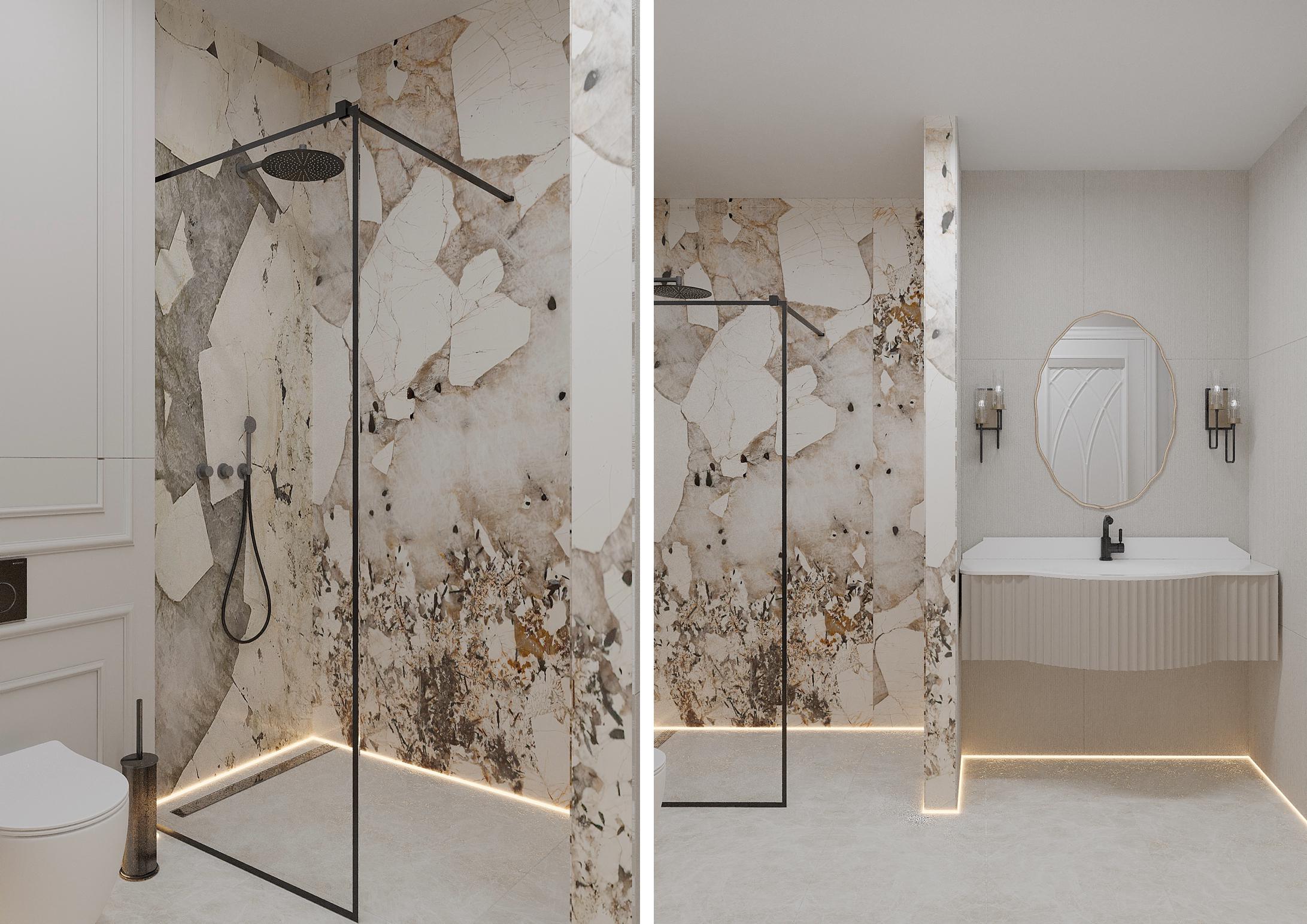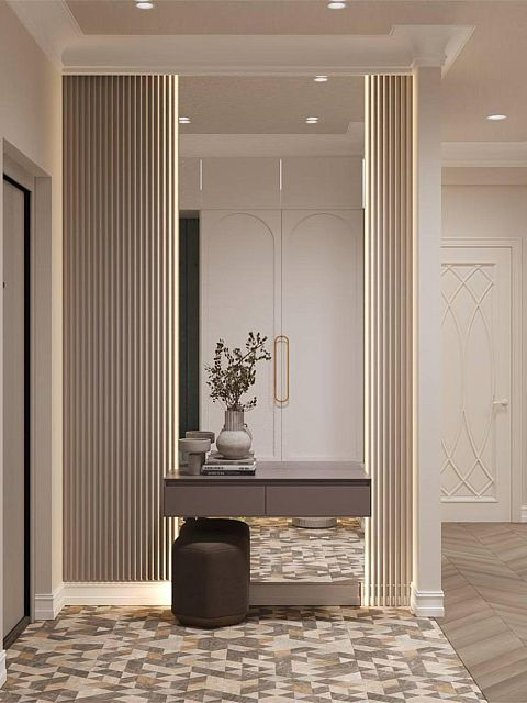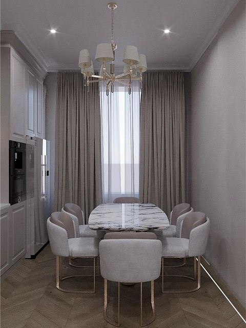 Особое внимание было уделено напольному покрытию и дверям, так как это является основой дизайн проекта, на фоне которого играют все декоративные элементы.