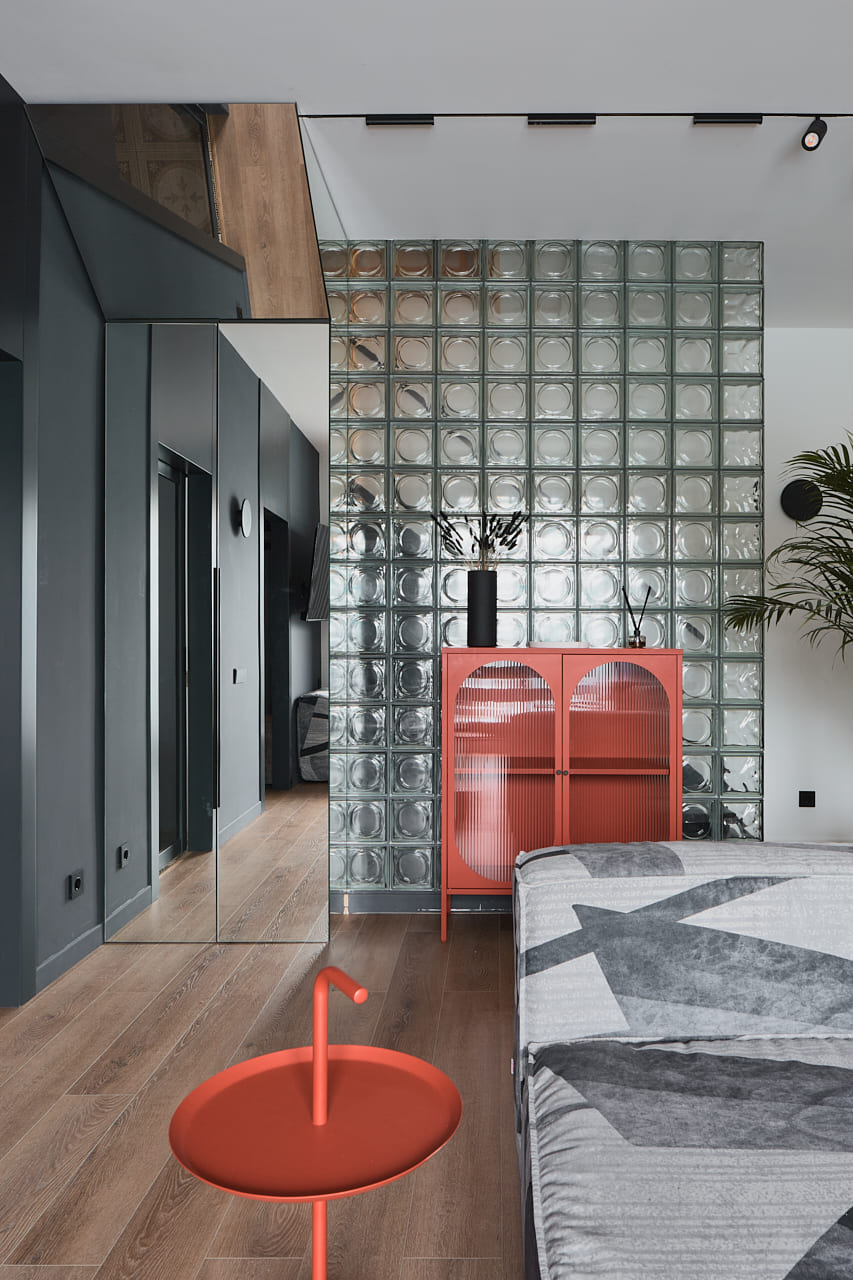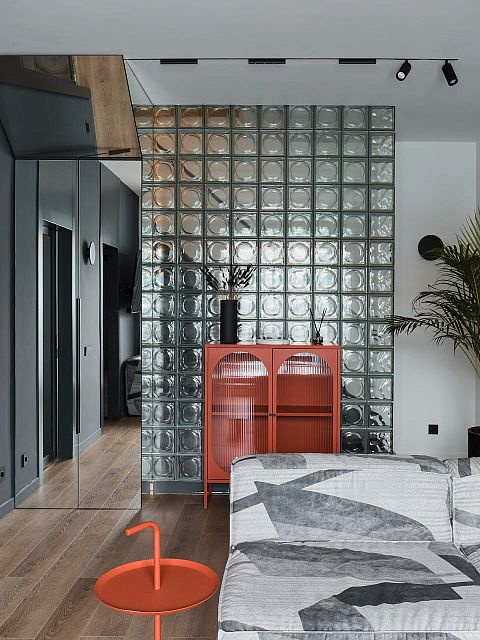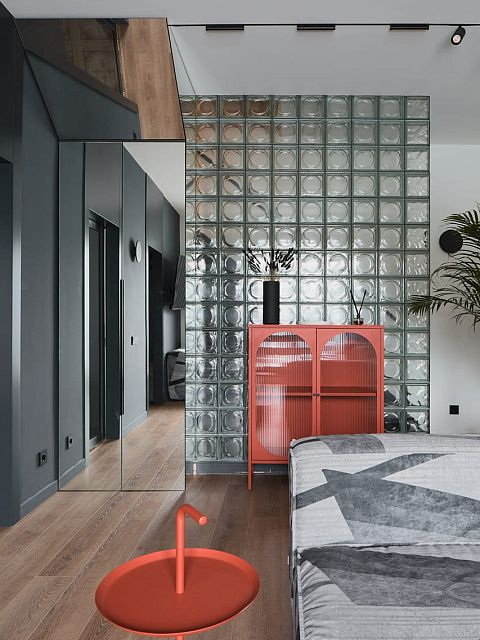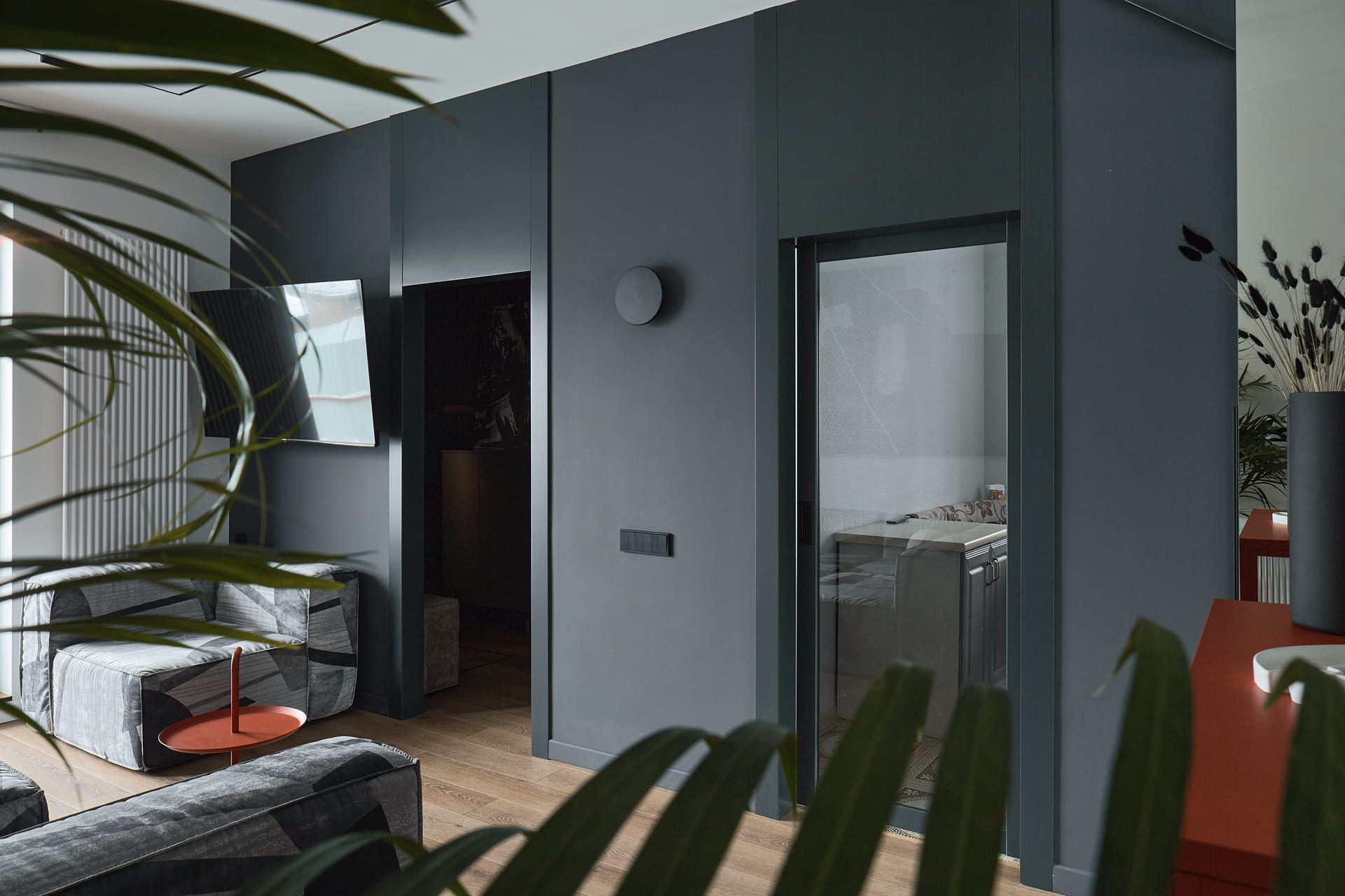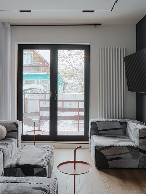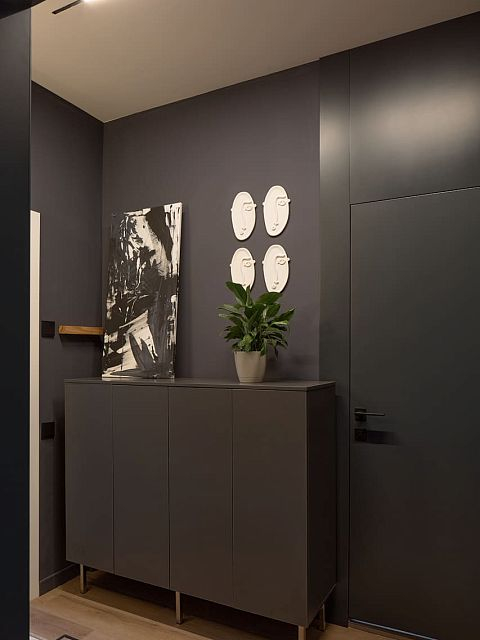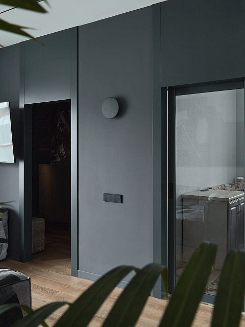 В создании стильного интерьера активно принимала участие фабрика «Терем», установившая двери модели Porte в изысканном цвете атрацит, а также раздвижную перегородку Corsa1.