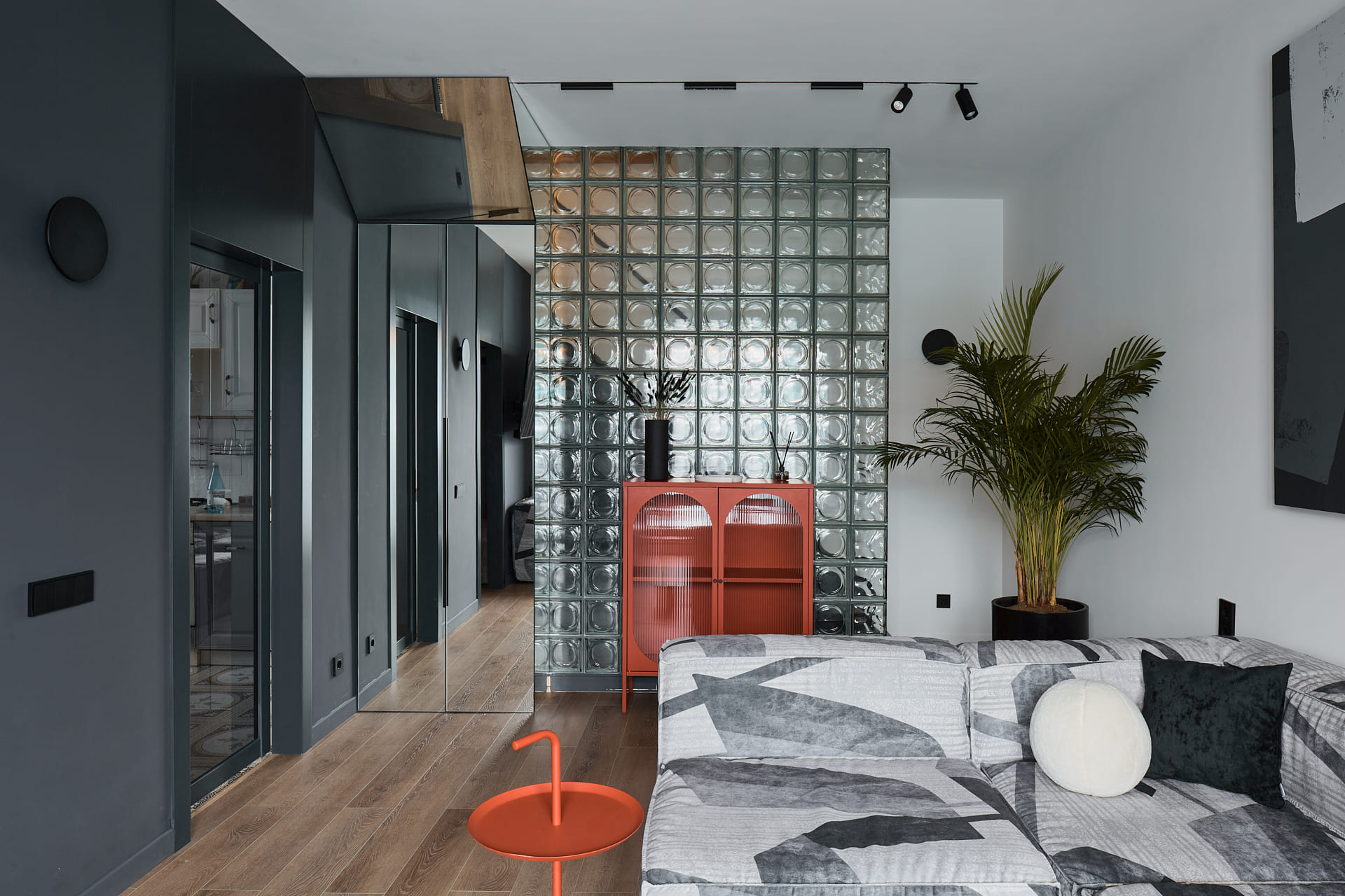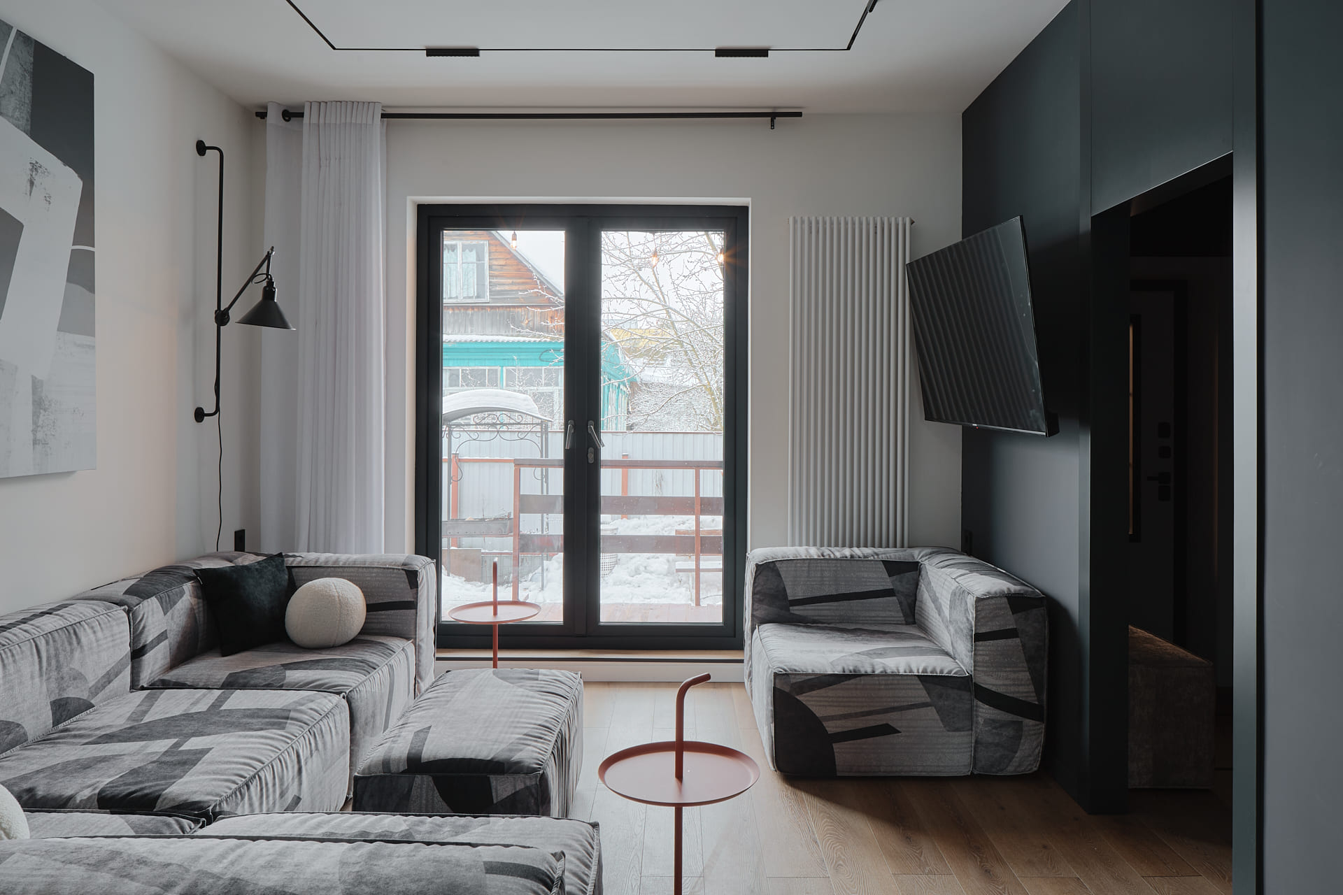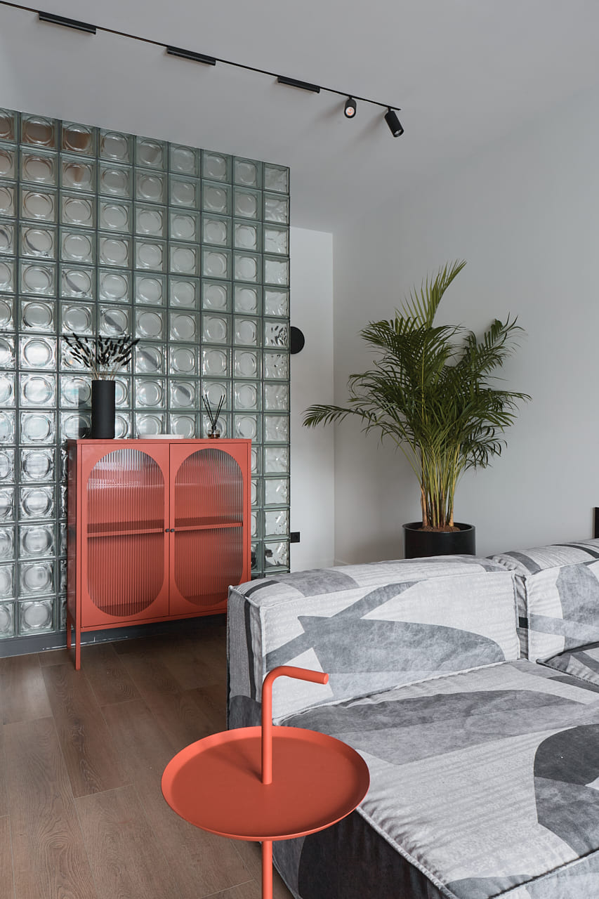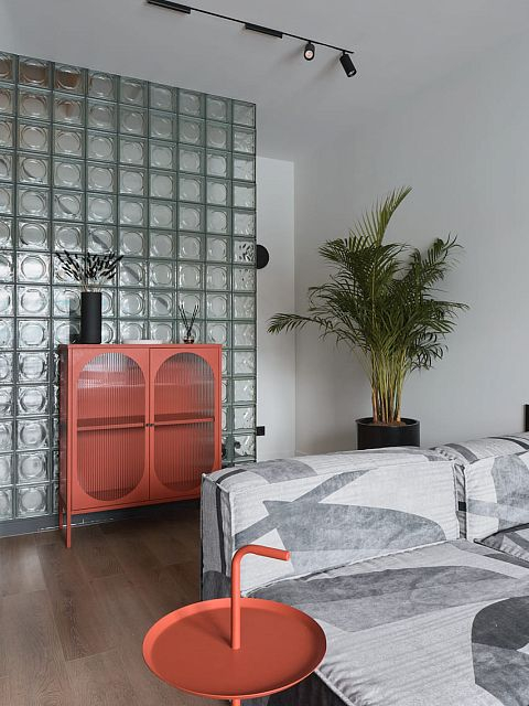 В создании стильного интерьера активно принимала участие фабрика «Терем», установившая двери модели Porte в изысканном цвете атрацит, а также раздвижную перегородку Corsa1.