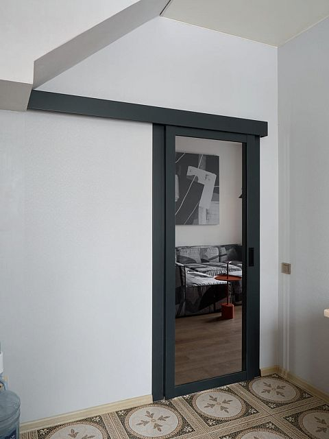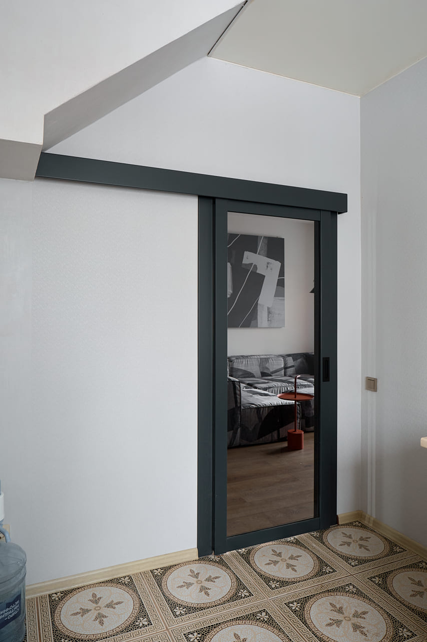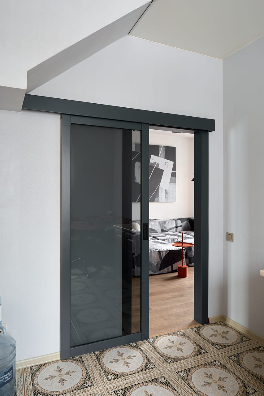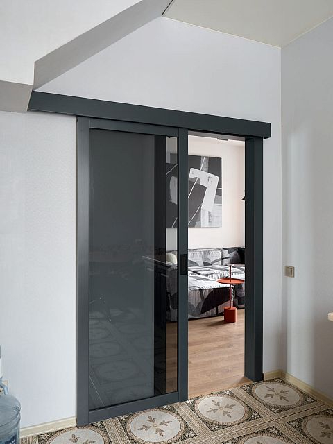 Двери Porte в оттенке атрацит идеально сочетаются с остальной отделкой, подчеркивая стиль и индивидуальность дизайна. В интерьере каждая деталь важна, и выбор изделий от фабрики «Терем» стал залогом качественного и эстетически привлекательного результата.