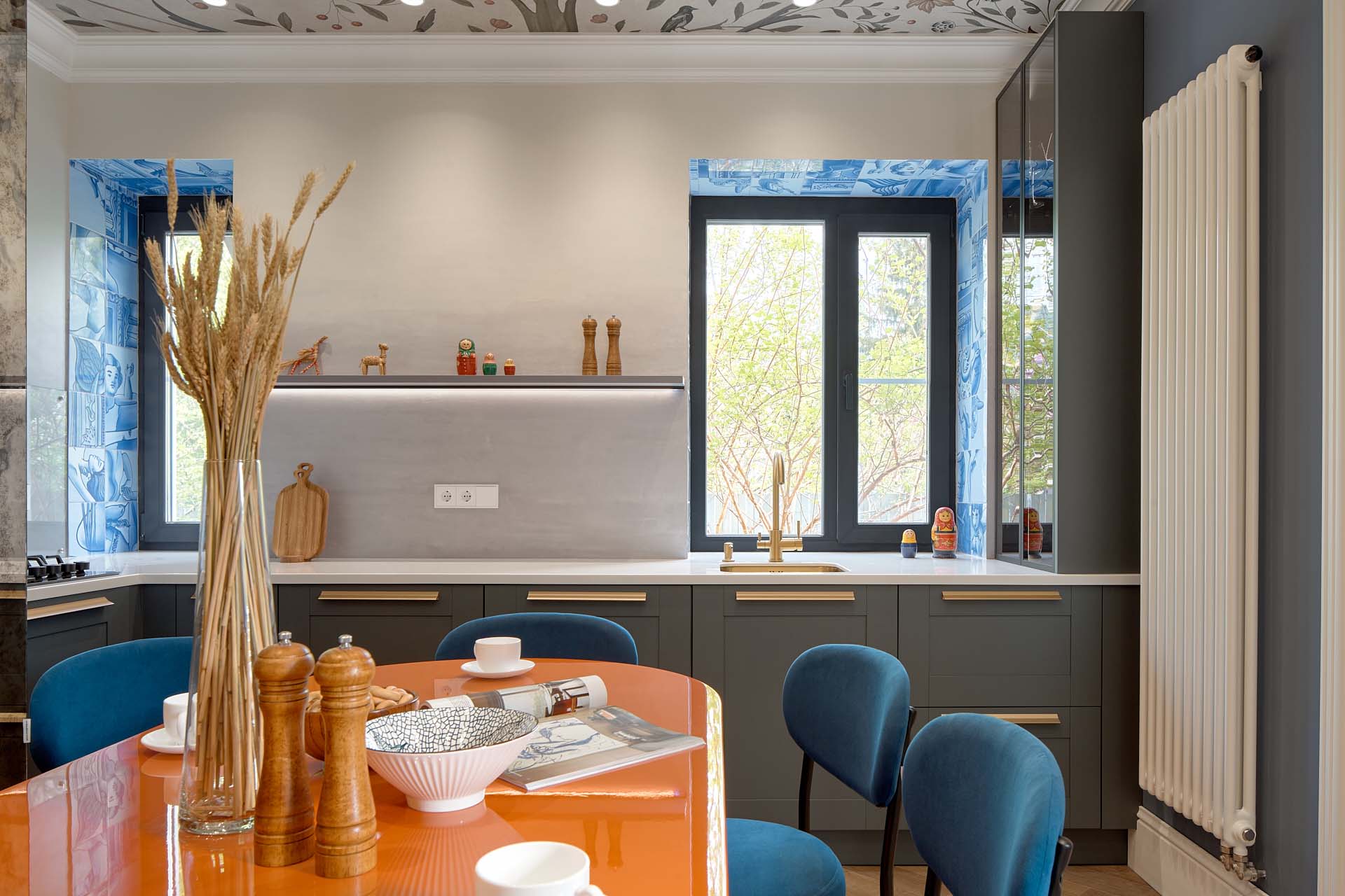 В новом проекте «Русская сказка для кухни-столовой» от «Дачного ответа», созданном талантливыми дизайнерами Анастасией Орловой и Полиной Абакумовой, зарождается уникальный стиль, гармонично объединяющий традиции и современность.