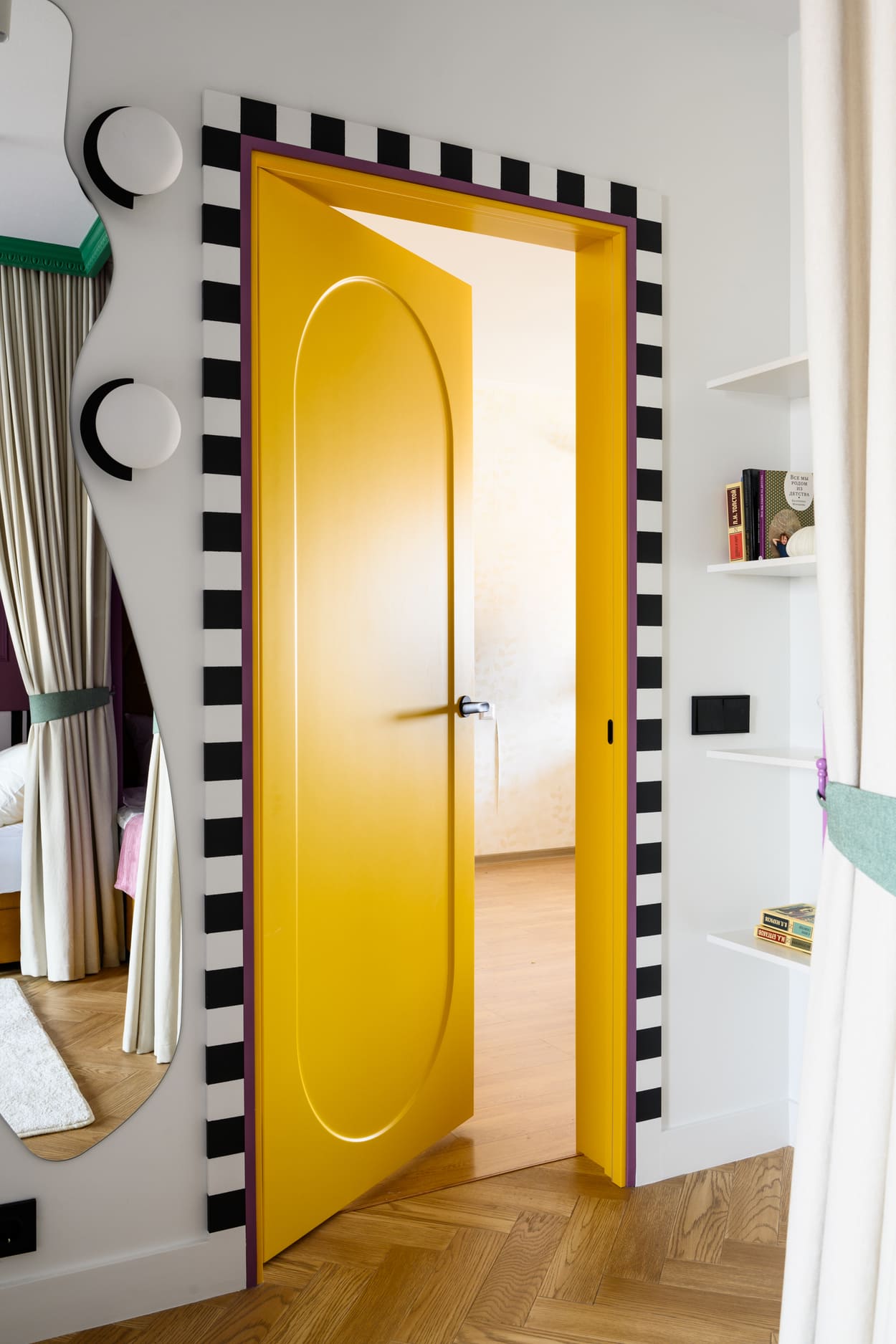 Новая дверь Anse стала ярким акцентом. Полотно выделяется изящной фрезеровкой и покрыто эмалью. Врезка фурнитуры производилась на фабрике, что обеспечило быструю и простую установку. Финальным штрихом служит стильная графичная ручка.