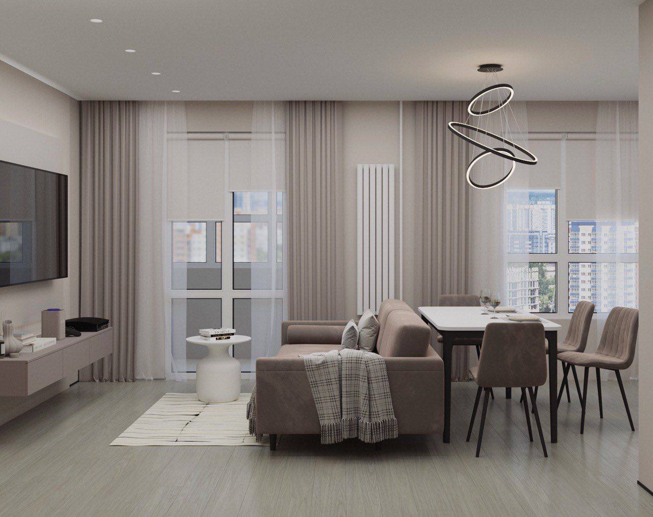 Квартира оформлена в стиле современный минимализм — лаконично, светло и воздушно.