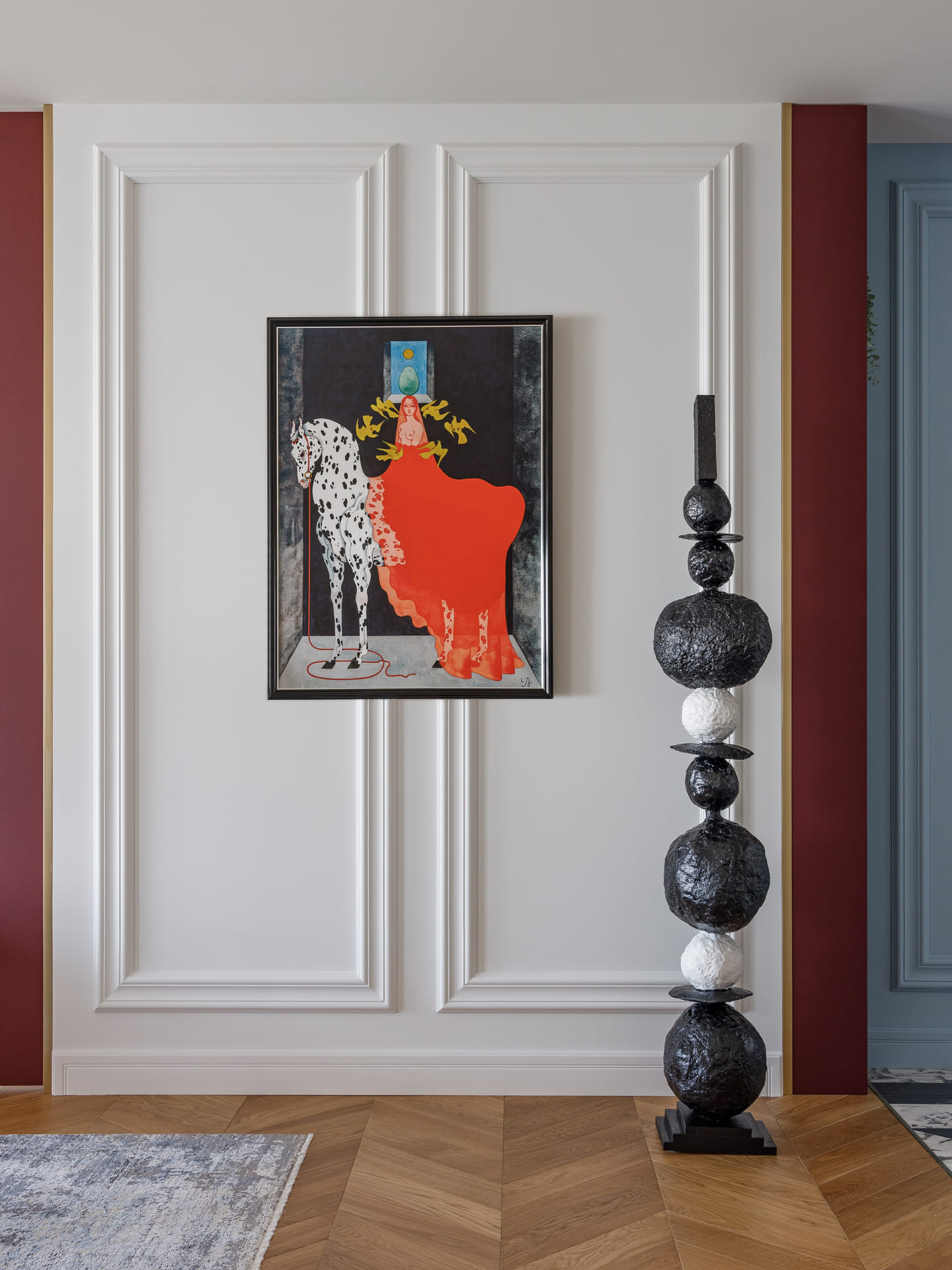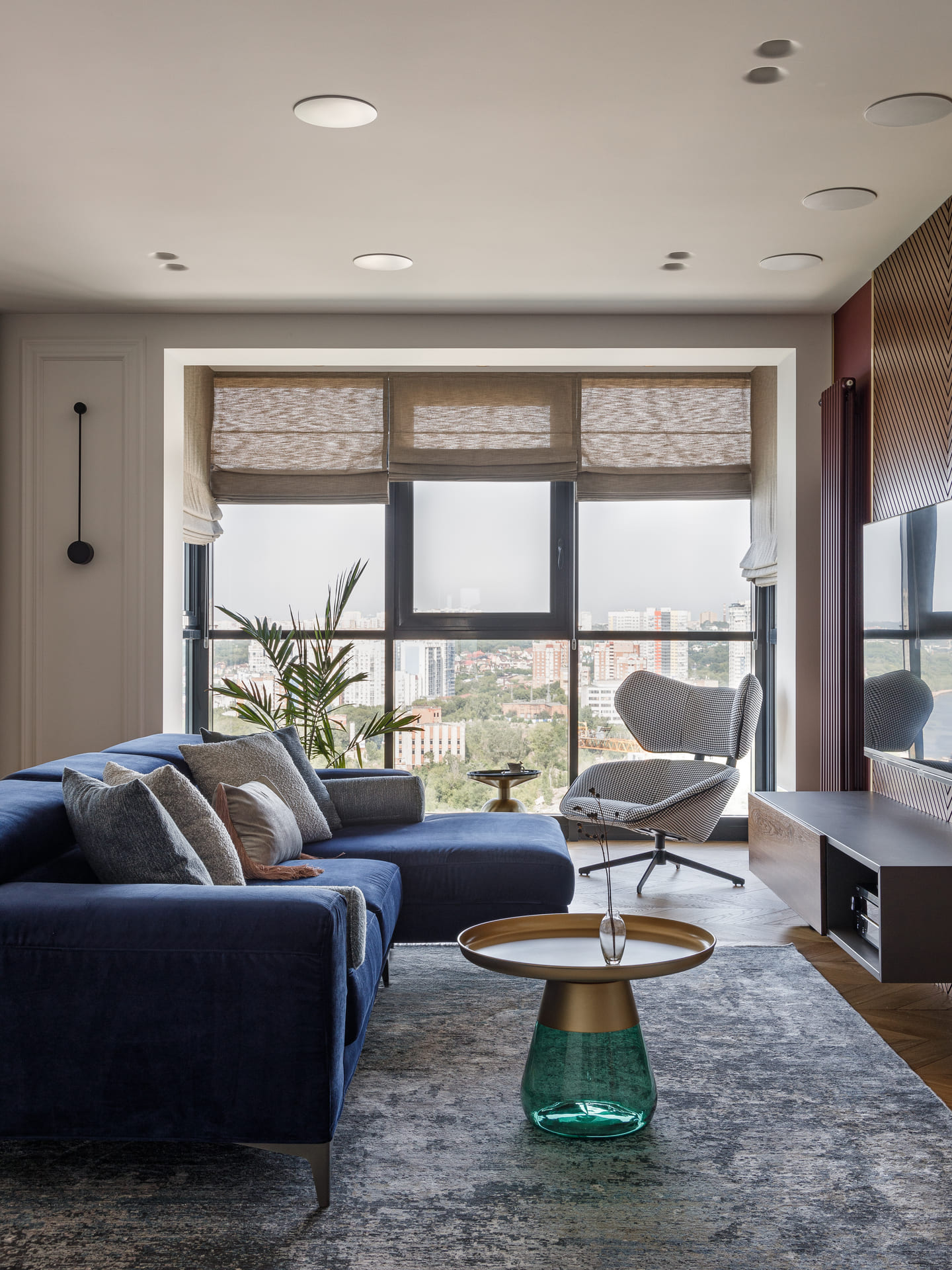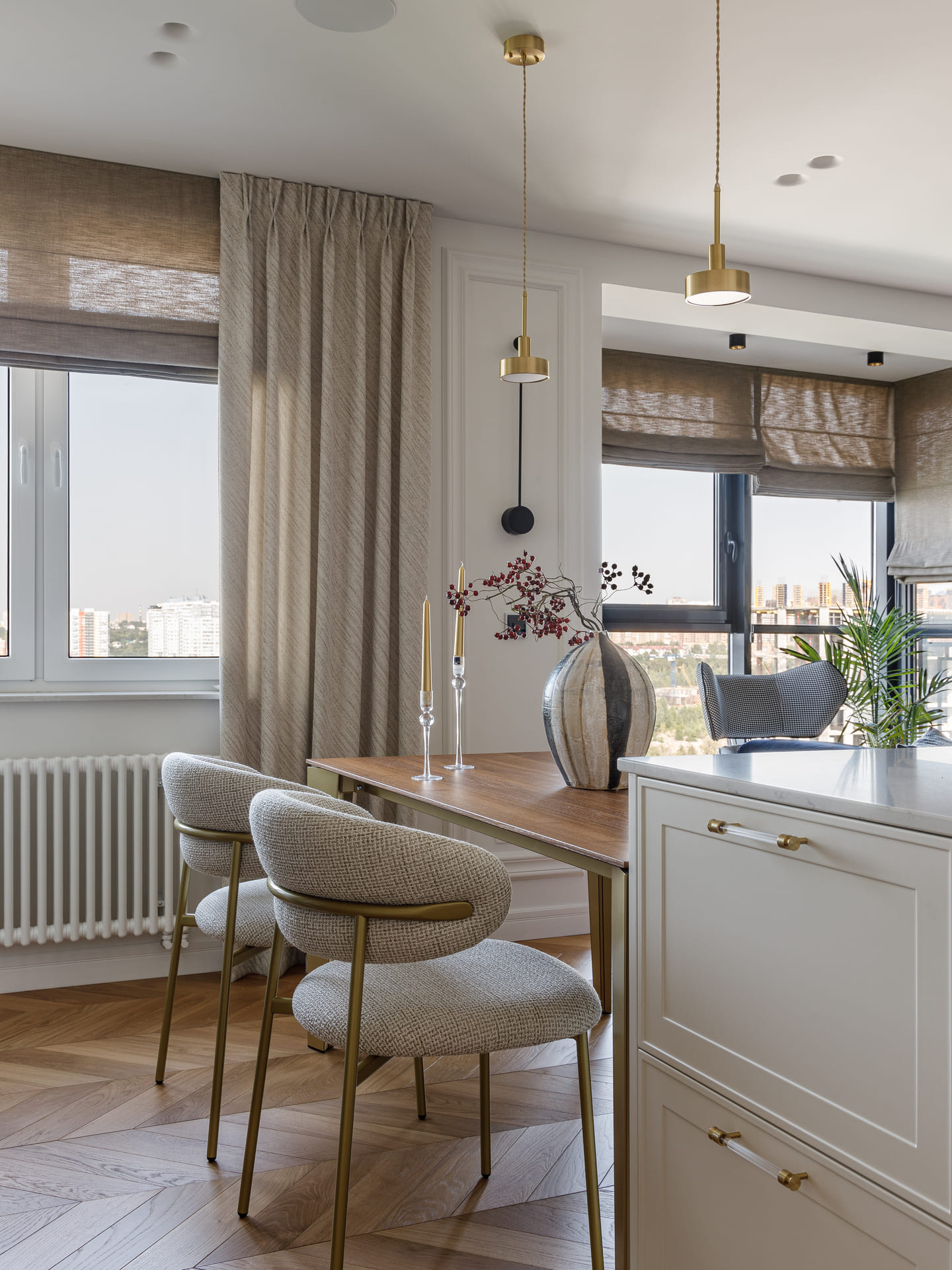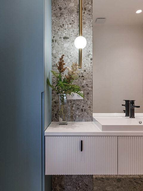 Интерьер квартиры светлый и в то же время насыщенный цветами, что создает ощущение свежести и воздушности. Использование ярких акцентов подчеркивает элегантность и добавляет индивидуальности пространству. Каждое помещение продумано таким образом, чтобы визуально расширить пространство, позволяя свету свободно плавать по комнате.