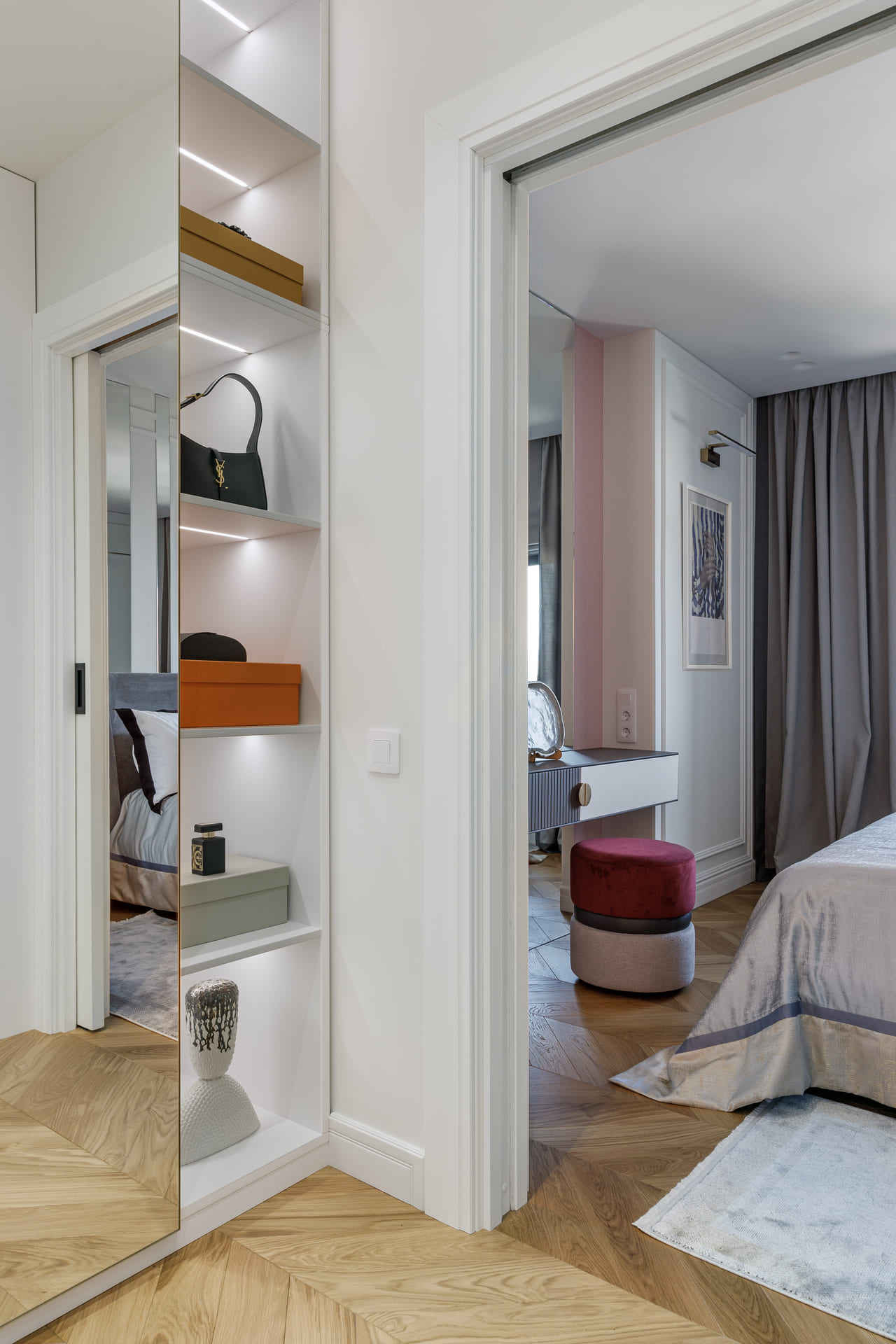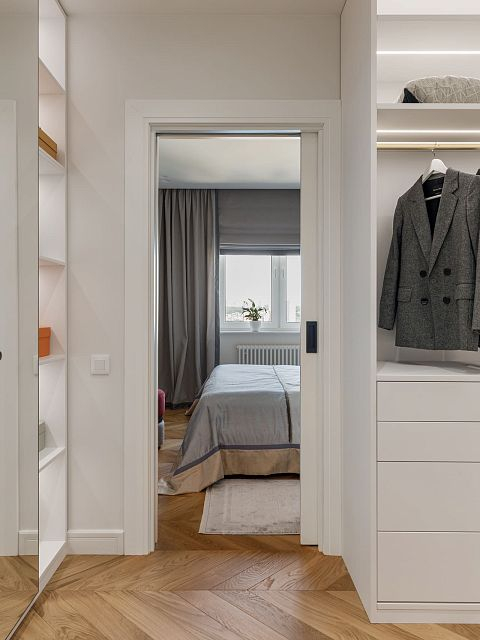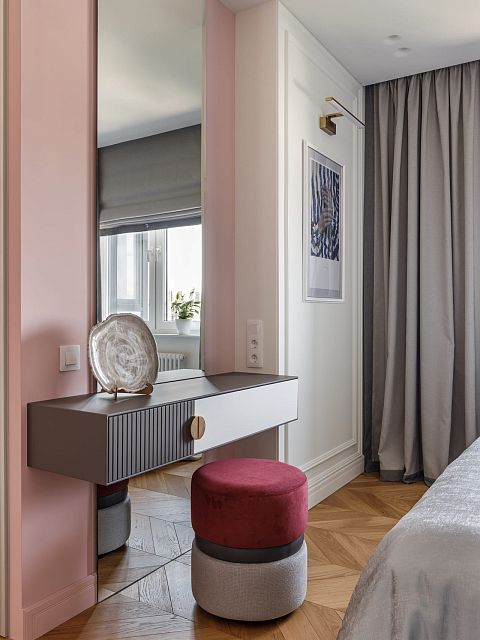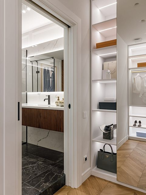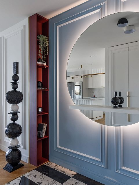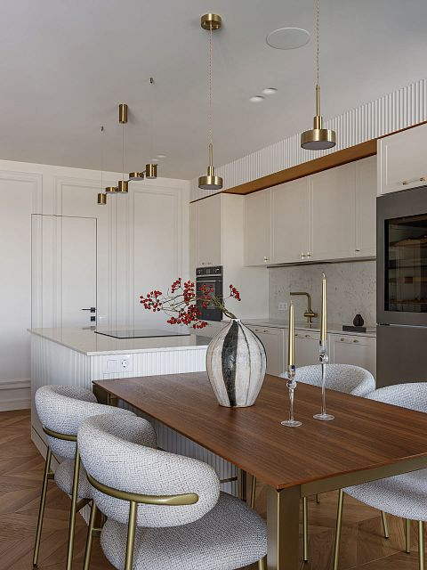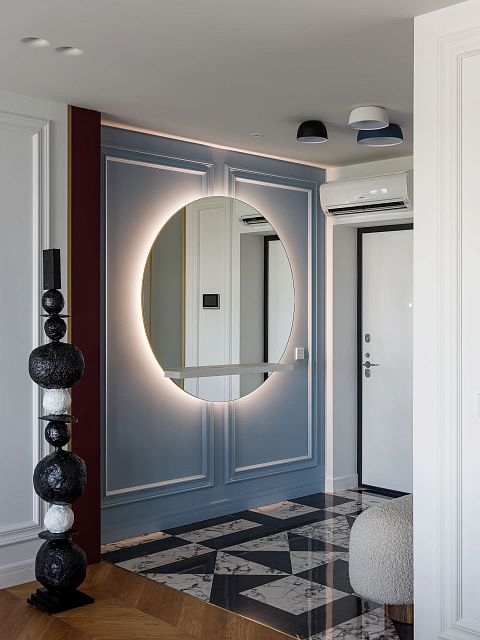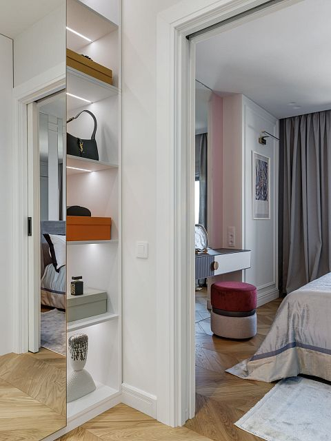 Проект "Светлая квартира для девушки" выполнен в стиле неоклассики, который идеально сочетает элегантность и технологичность. Этот стиль позволяет создать атмосферу утонченности, при этом внедряя современные решения, что делает интерьер не только красивым, но и функциональным.