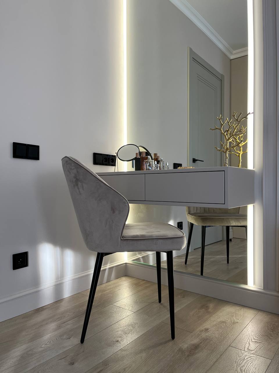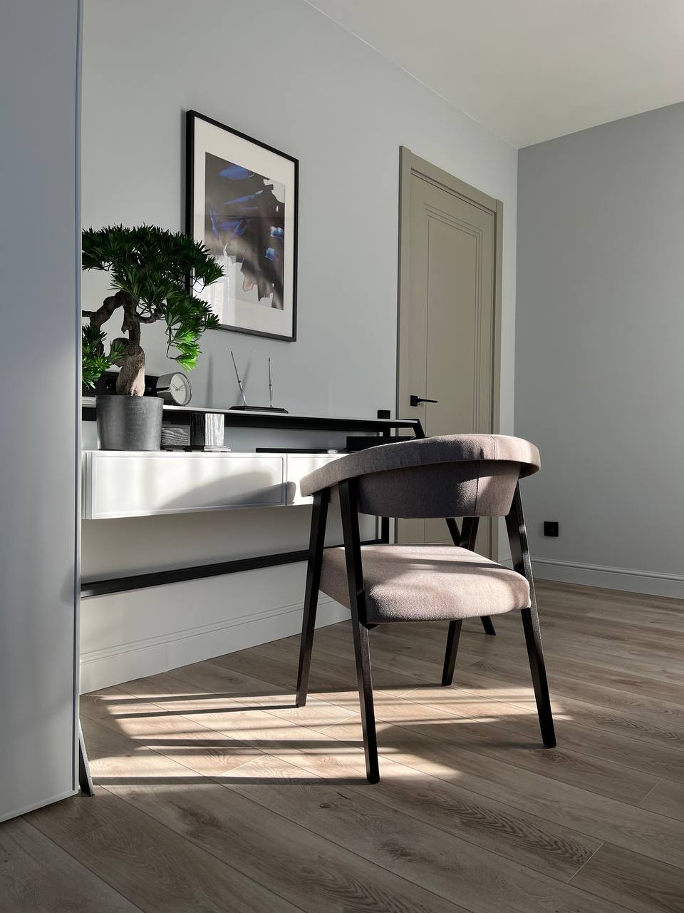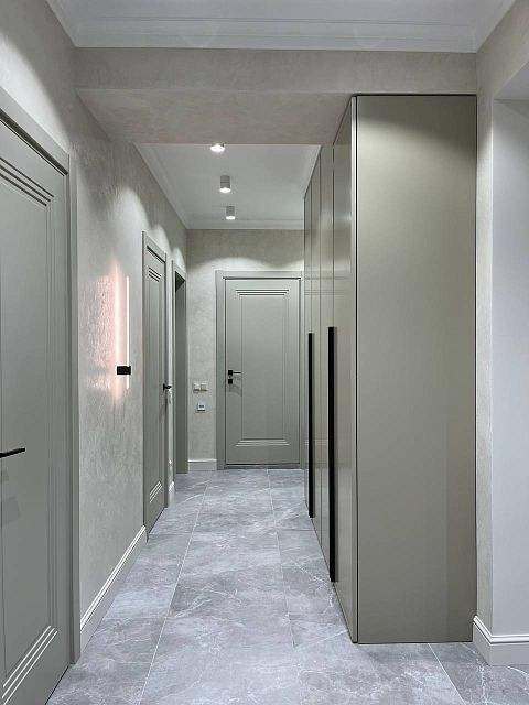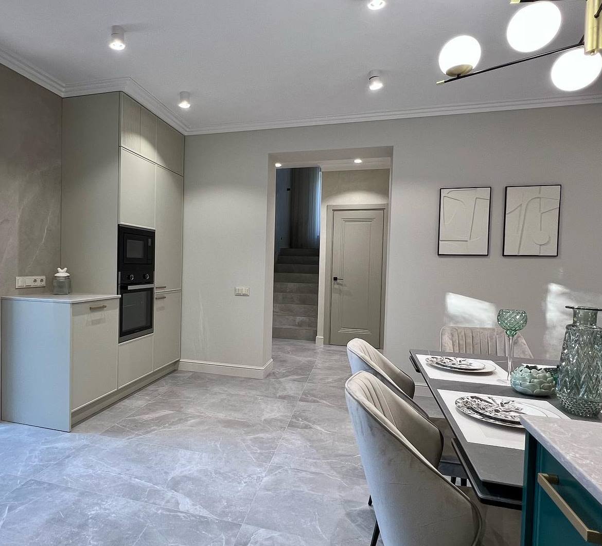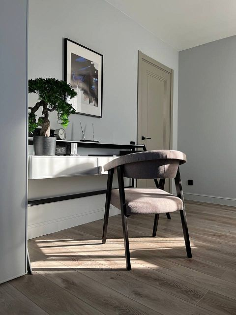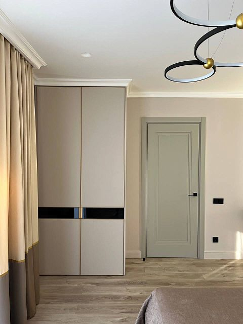 Получилось очень гармоничное и уютное пространство. Все сошлось воедино: цветовое решение, мебель, аксессуары, декор, двери. Здесь просто хочется жить и наслаждаться каждым моментом!
