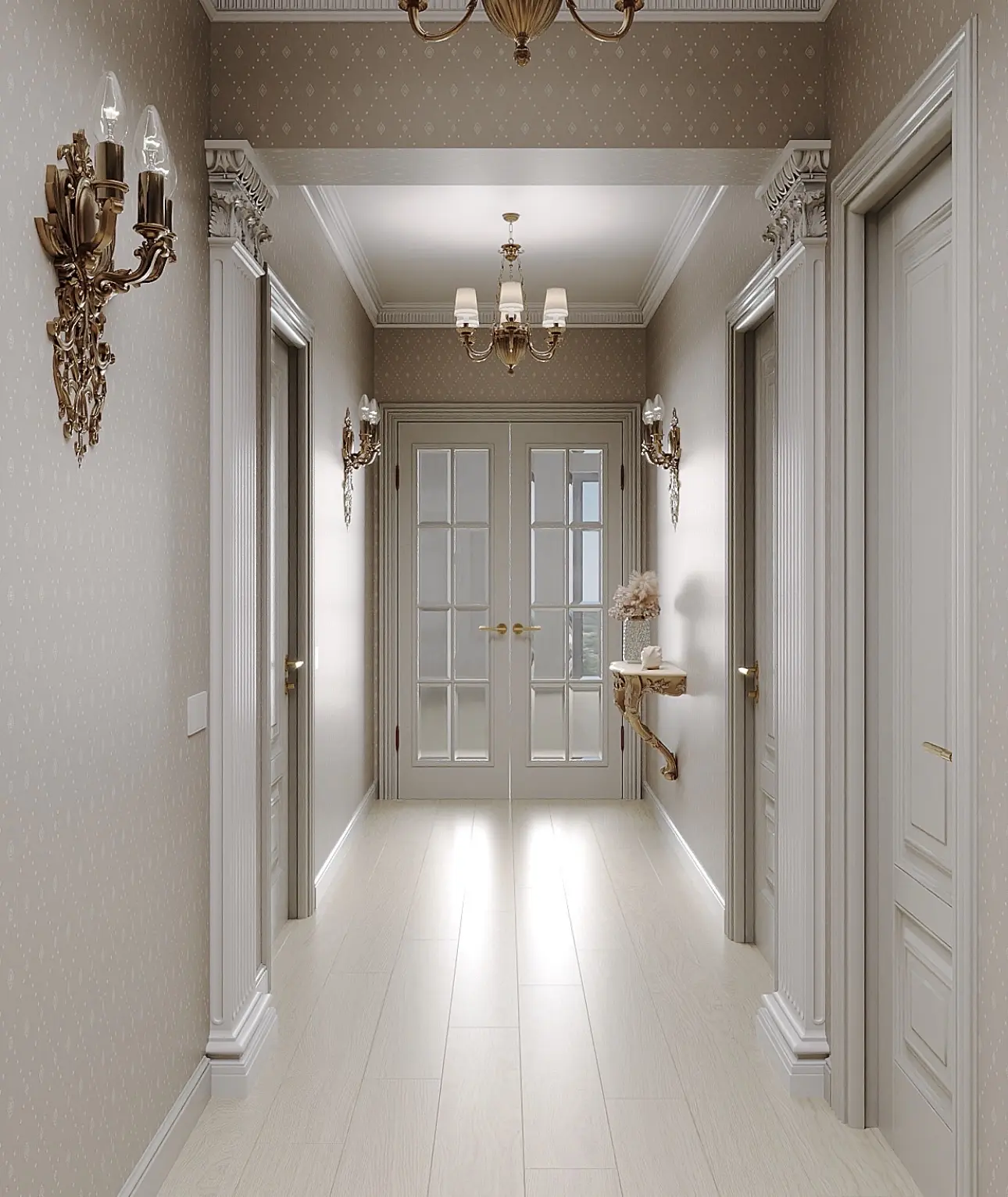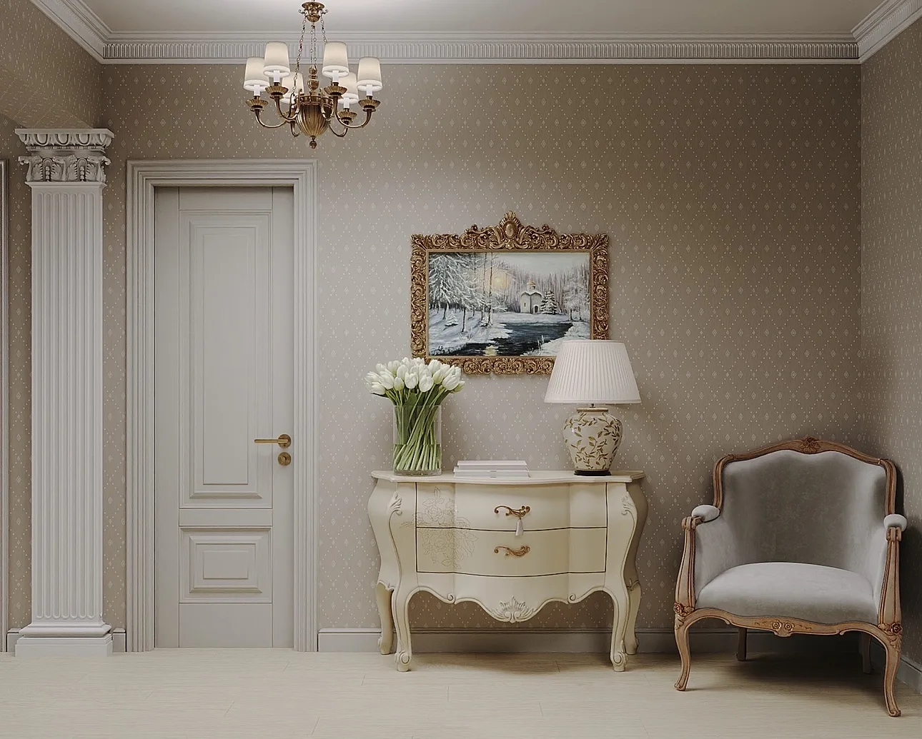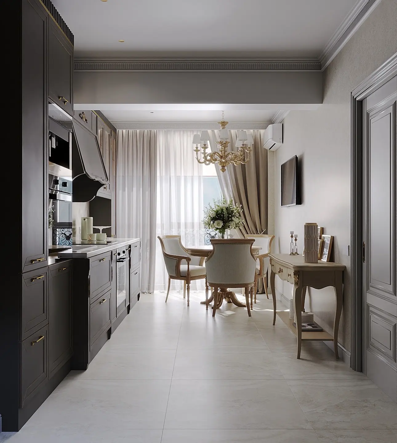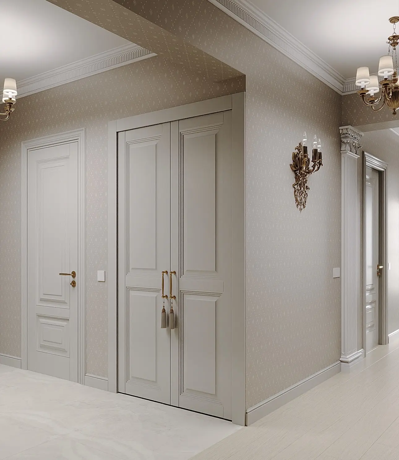 Дизайн-проект «Бархатные сезоны» из Сочи — это воплощение элегантной классики с акцентом на уют и гармонию. Философия проекта строится на мягких оттенках, изысканности линий и тактильной комфортности интерьера, создавая атмосферу вечного курорта. В интерьере использованы двери фабрики Терем, ставшие выразительным архитектурным акцентом. Мебель и декор выполнены в классическом стиле с элементами золота, плавными формами и утонченными деталями.