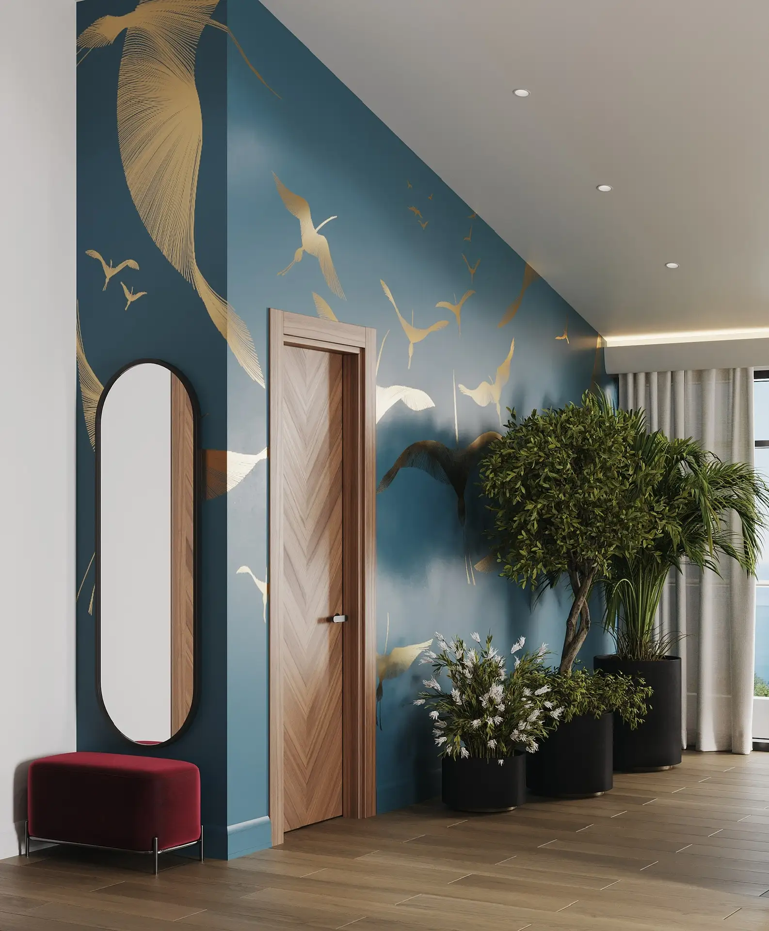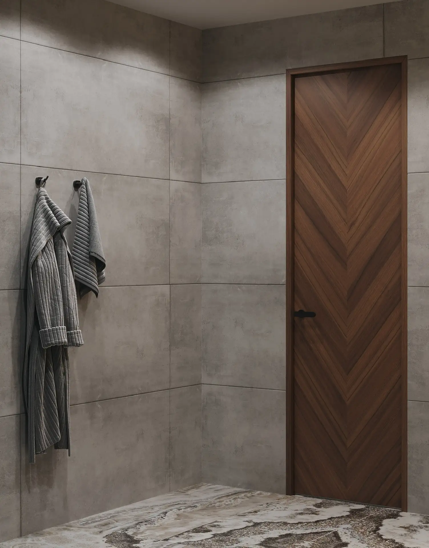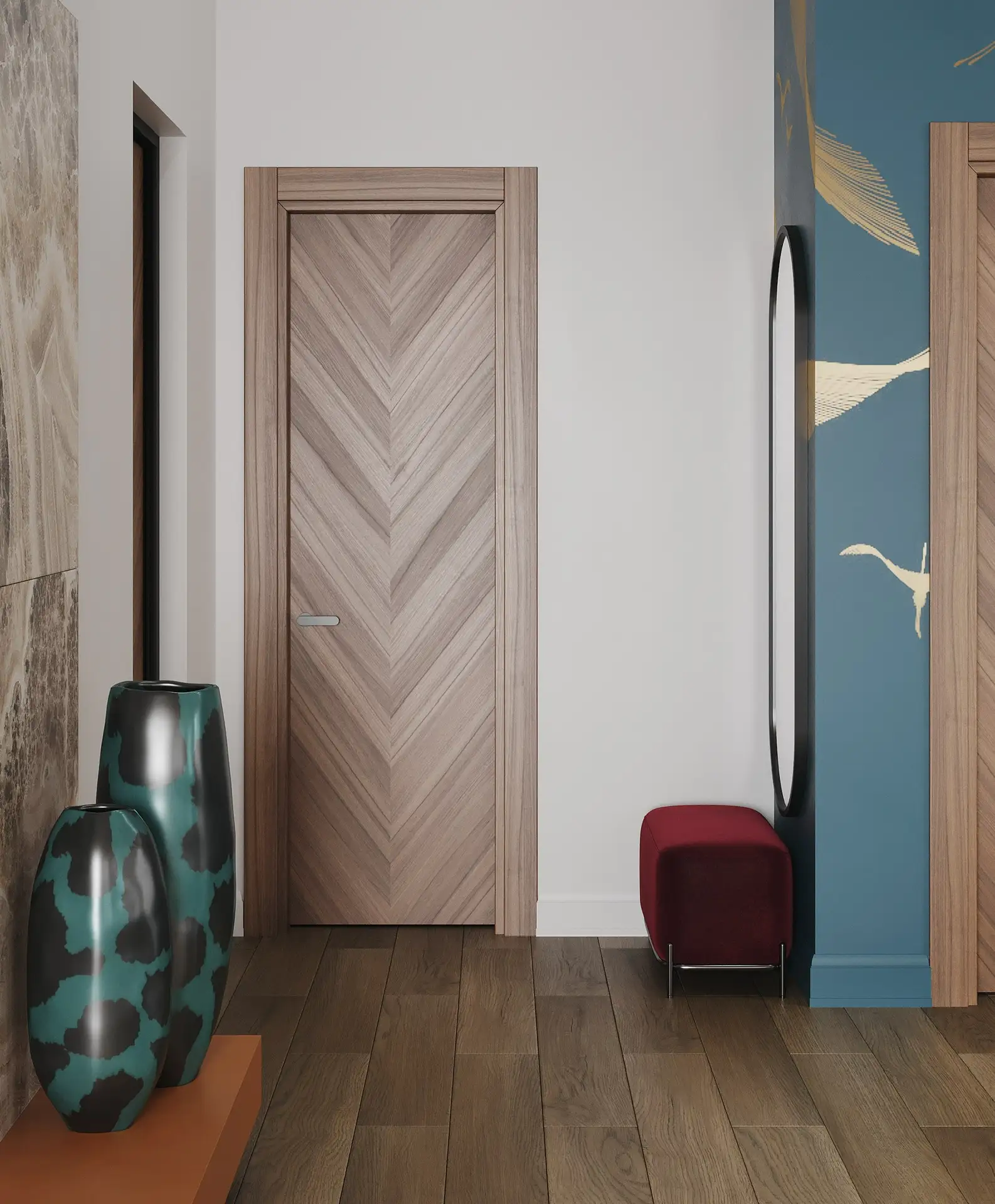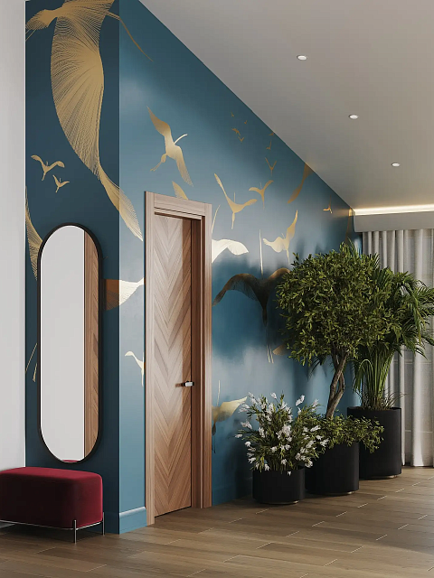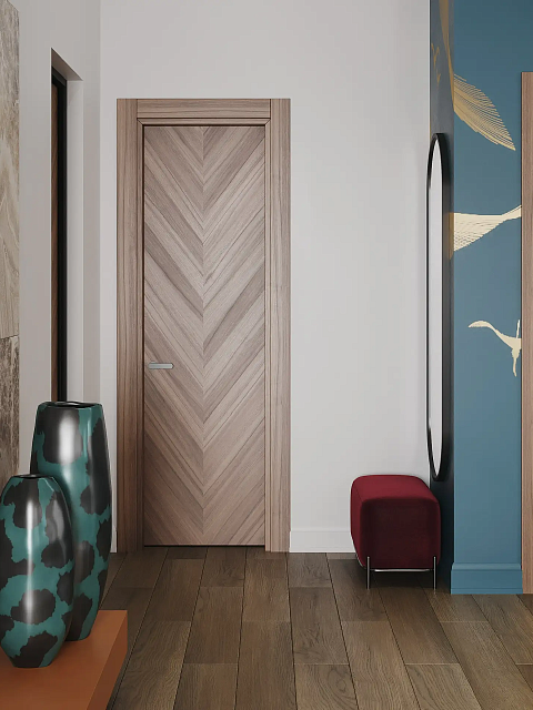 Дизайн-проект «Журавли» основан на гармонии с природой и современным стилем. Основная философия — создавать пространство лёгкости, свободы и уюта с использованием натуральных материалов и сдержанных цветовых акцентов. В проекте применены двери фабрики Терем, модель Unit в шпоне, которые стали стильным и выразительным элементом интерьера. Их диагональная текстура добавляет динамики и подчёркивает индивидуальность пространства.