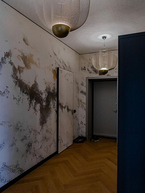 В интерьере преобладают светлые тона, фактурные поверхности и натуральные материалы, а также графические контрасты, подчеркивающие чистоту линий. Много света и отражающих поверхностей помогает визуально расширить пространство, сделать его более воздушным. Простота и лаконичность форм соседствуют с продуманными декоративными деталями, создавая актуальное, но уютное пространство. «Новая жизнь» — это проект для людей, готовых к переменам, ценящих комфорт, стиль и функциональность без лишних перегрузок.