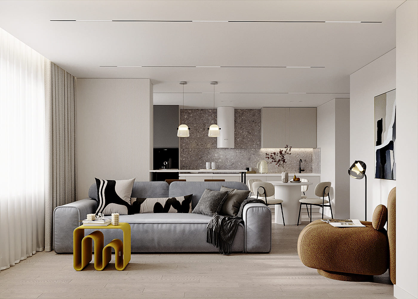 В данном проекте квартиры акцент сделан на создании уюта и гармонии. Использование межкомнатной двери скрытого монтажа под покраску позволило достичь визуальной целостности пространства и подчеркнуть элегантность интерьера.
