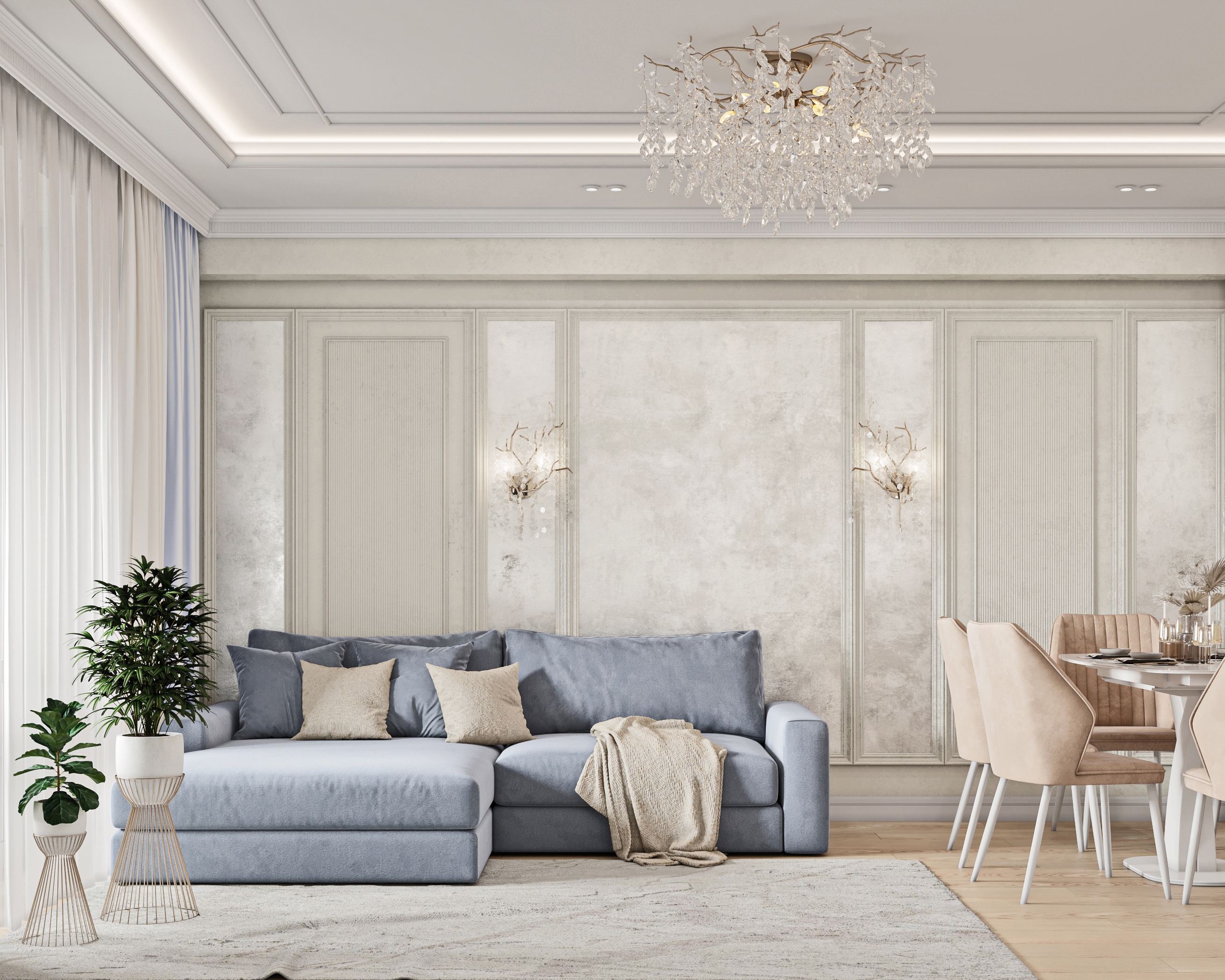 Респектабельность, утонченность и изысканность - главные черты неоклассики - все это в новом дизайн проекте архитектора Анны Колосовой (г.Южно-Сахалинск).