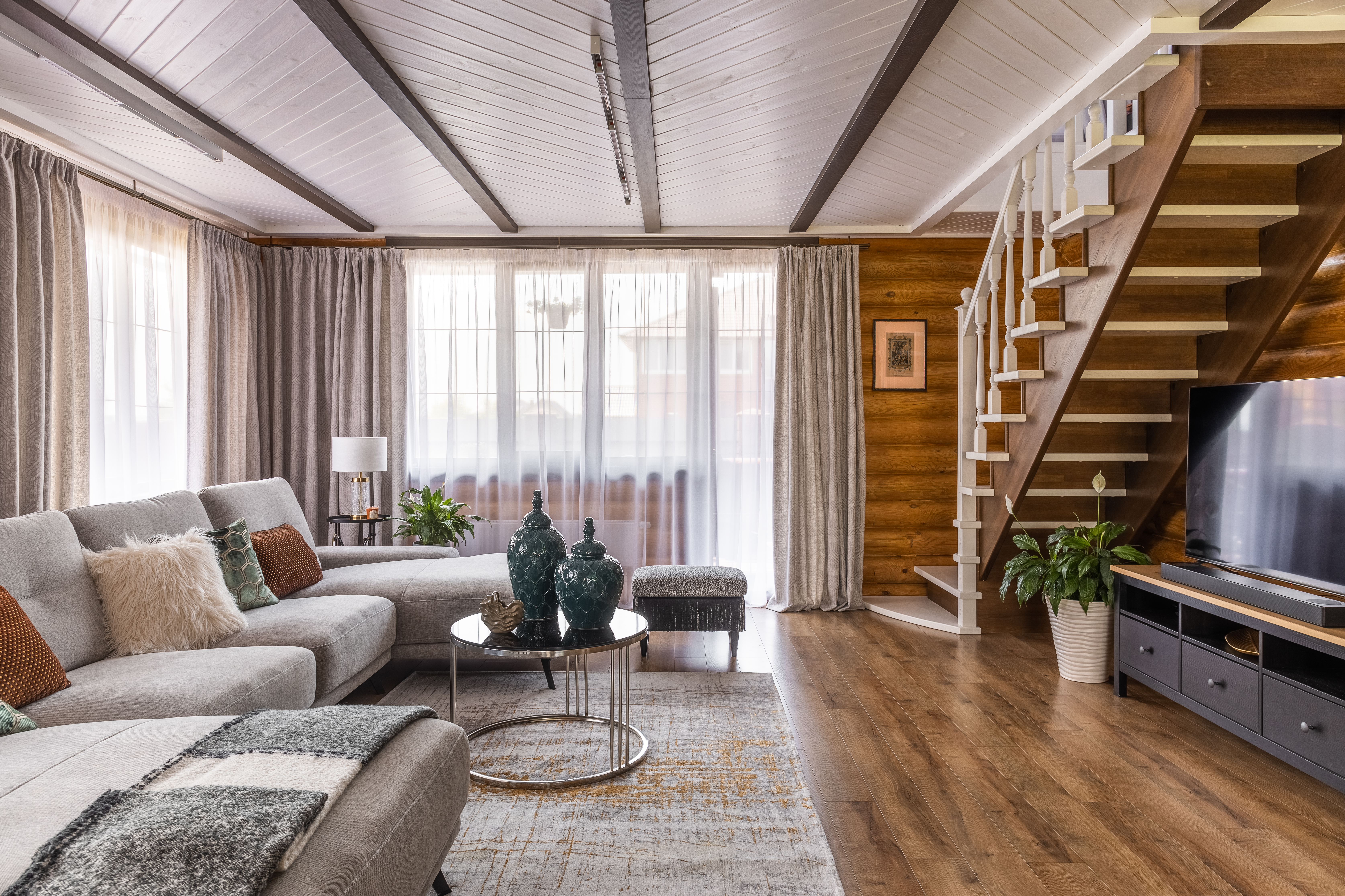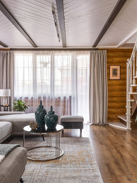 Перед дизайнером Региной Бикбулатовой (г.Уфа) стояла задача создания теплого, уютного и  атмосферного пространства для отдыха в отдалении от городской суеты. И на наш взгляд она справилась блестяще!