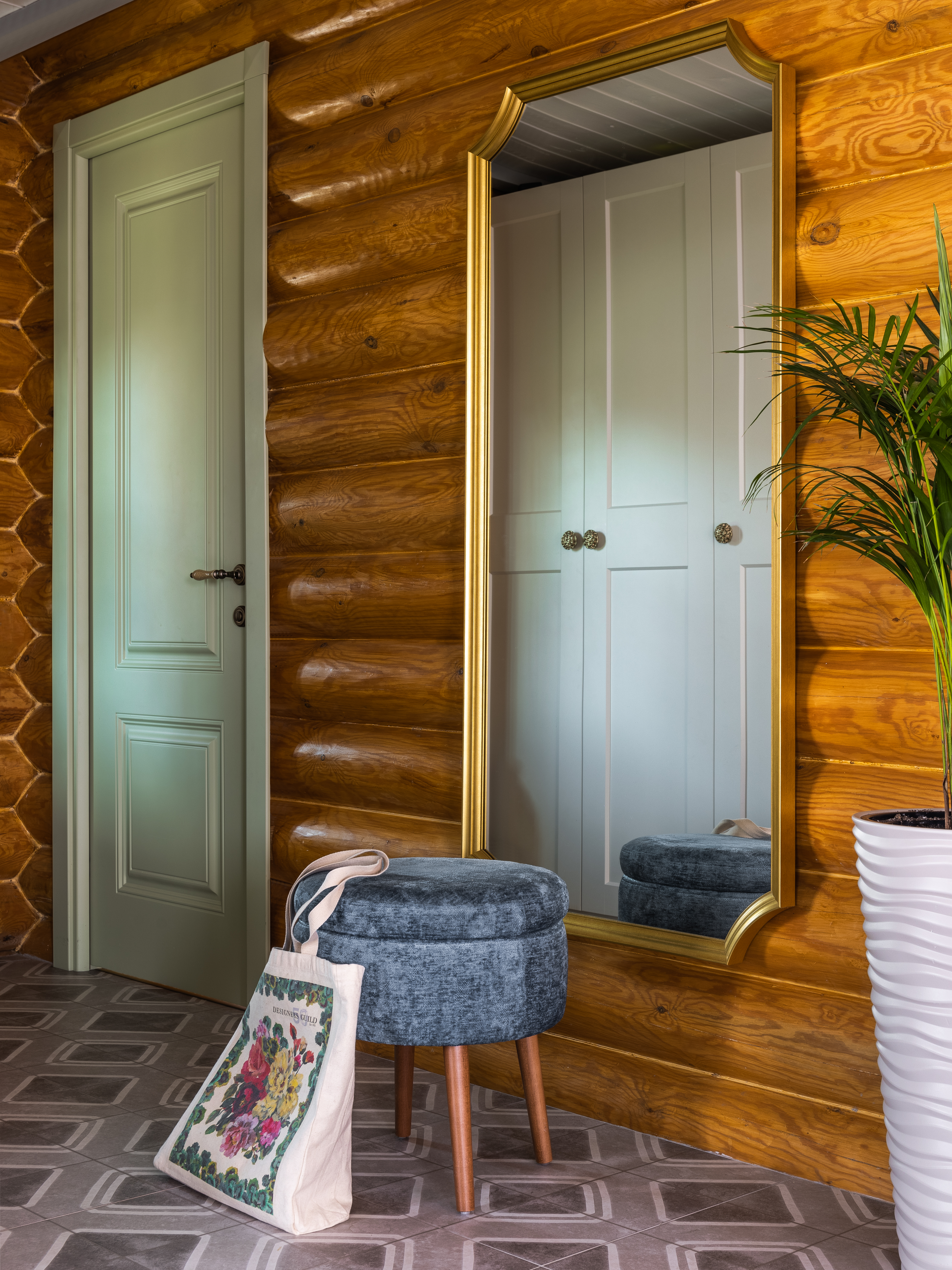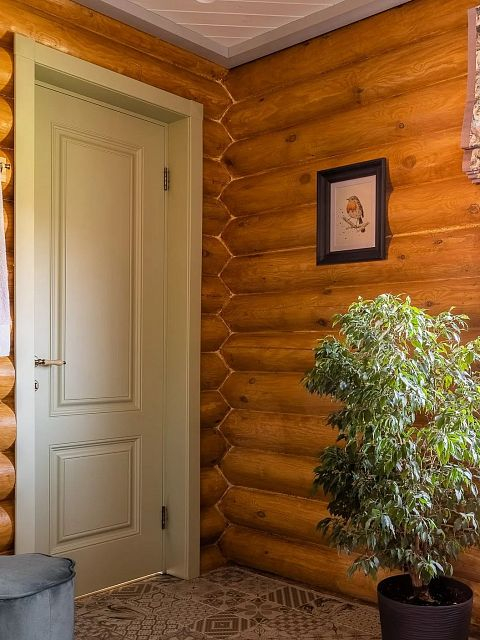 Насыщенный цвет золотистого дерева стен умело сбалансирован спокойными цветами текстиля и  мебели. В этом же ключе выполнены двери Turin 2 из классической коллекции Modern, шафрановый цвет эмали которых абсолютно гармонично вписывается в общую концепцию проекта. А наличие ярких и красивых акцентных деталей – консолей, подушек, ваз и ламп – привнесло в интерьер нотки  неповторимости и шарма.