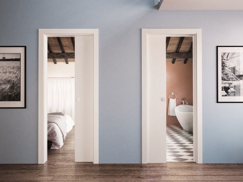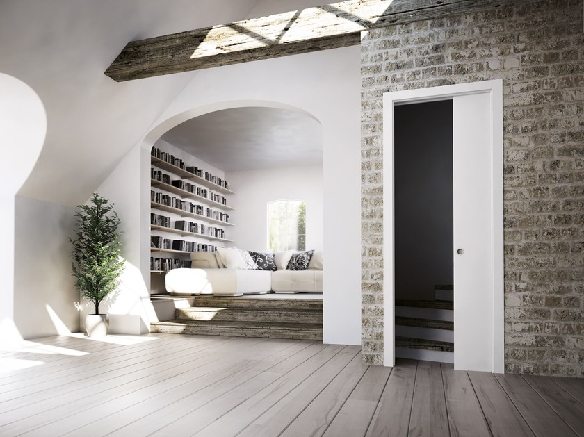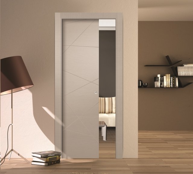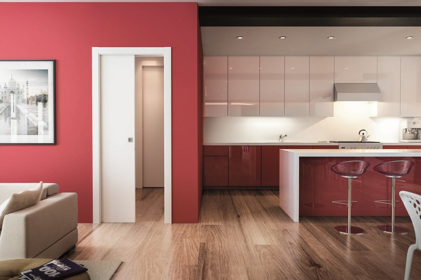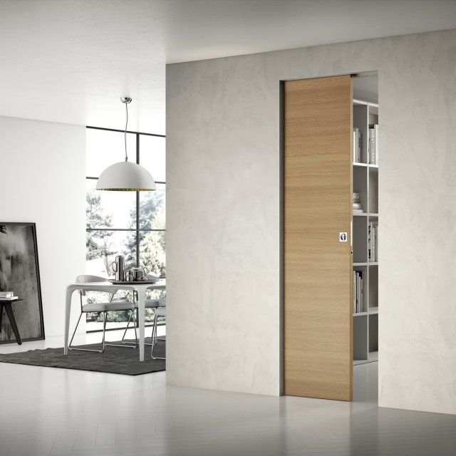 Пенальная система открытия двери SLIDE позволяет полностью скрыть дверное полотно в стену. Такое решение приводит к значительной экономии пространства и оставляет широкий дверной проем открытым, когда дверь находится в скрытом положении, визуально расширяя комнату. Межкомнатную дверь с пенальной системой можно оставить приоткрытой без опасений: она не создает лишних препятствий на пути и не закрывается от сквозняка.