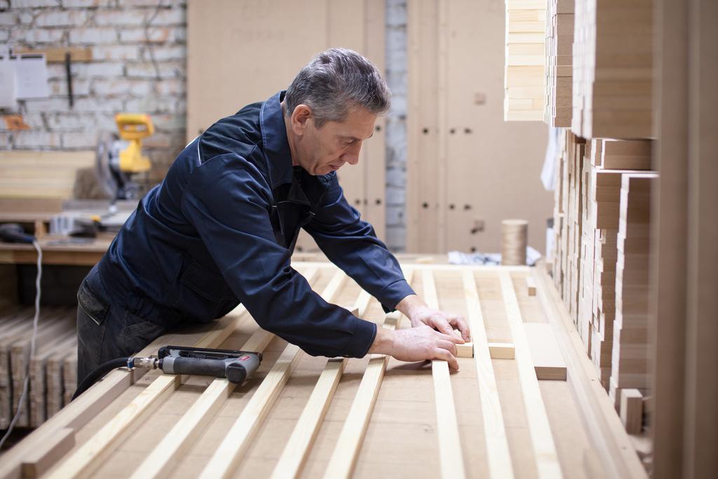 Материалы и структура каркасов различаются в зависимости от покрытия. Чтобы все элементы хорошо склеились, мы не допускаем разницы размеров даже в 0,5 мм. Для наполнения полотна мы используем не сотовый картон, а МДФ-рейки. Они прочные и сводят к нулю процент искривлений.