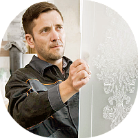 Каждая дверь для меня – как полотно, индивидуальна и неповторима. Мне нравится работать с патиной и делать рисунки на стекле. УФ-принтер позволяет печатать практически на любой поверхности. Чернила очень стойкие, их нельзя удалить никакими химическими веществами, поэтому работать приходится очень аккуратно — нанесенный рисунок уже не исправишь. Чтобы нанести патину, сначала нужно покрасить дверь в базовый цвет, потом проверить на наличие дефектов, и только после этого делать патинирование. После всех работ я отправляю дверь контролеру, на итоговую проверку, если все в порядке, на нее наносят финишное покрытие.