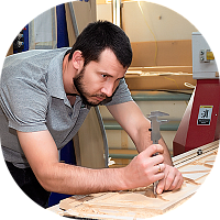 Я работаю на участке станков с числовым программным управлением. В моем цехе на полотнах появляются рисунки: узоры любой сложности, фрезеровка, имитация филенки. Чтобы вырезать рисунок на полотне, его нужно занести в оборудование. Поэтому моя основная задача – разрабатывать программы для каждого рисунка. Без меня машина ничего не сделает сама, отвлекаться нельзя, точность — залог успеха.