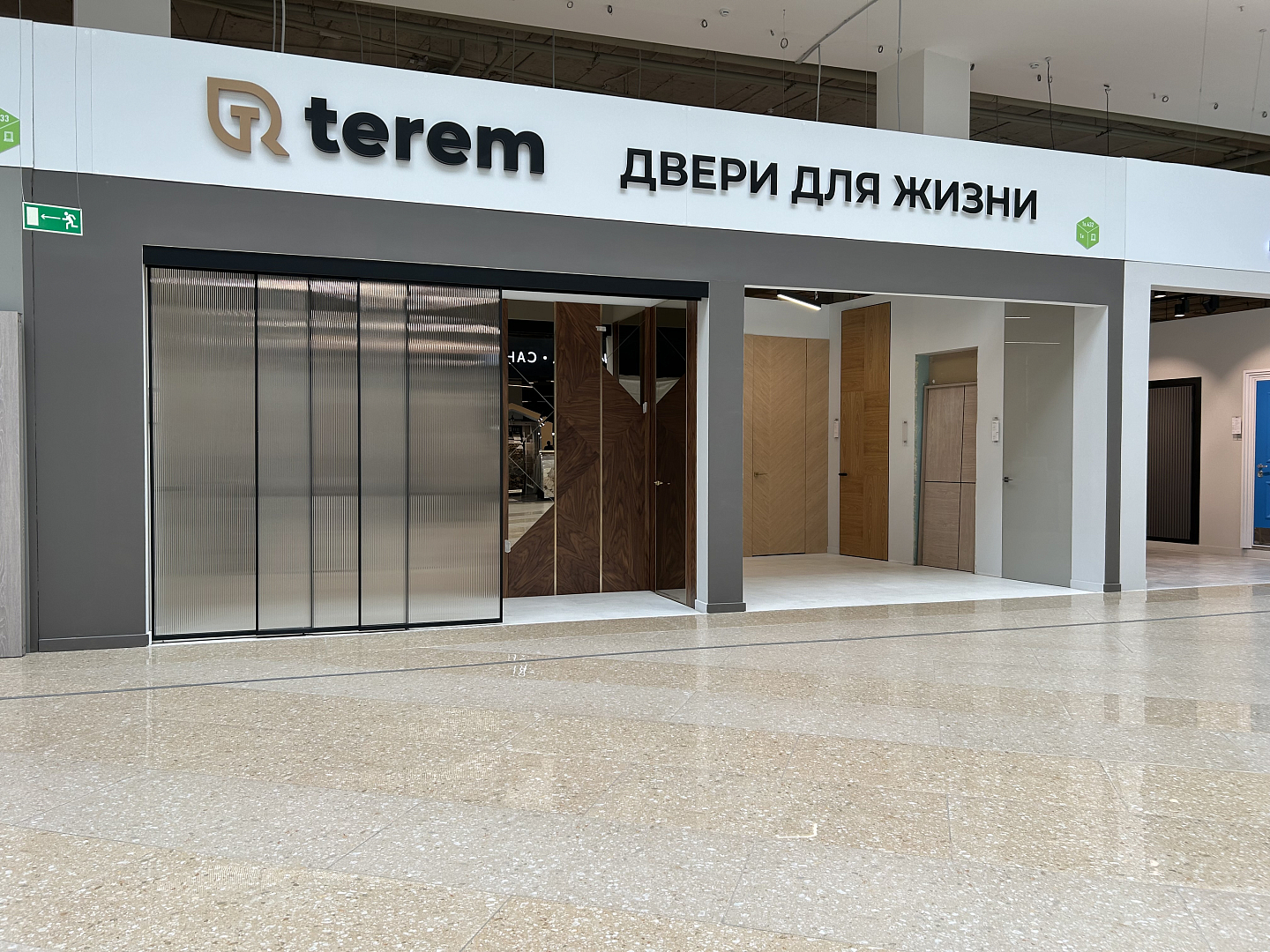 Фирменный салон Terem по адресу Санкт-Петербург, ТЦ "Кубатура", Фучика, 9, центральный проход, 1 этаж, секция 1.432, салон "Двери Терем"